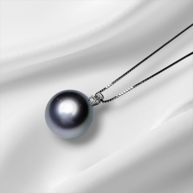 鑑別書付(Certificate )☆Pt South Sea Black Pearl(南洋黒蝶真珠) 13.2mm D0.05ct☆Pendant Necklaces☆