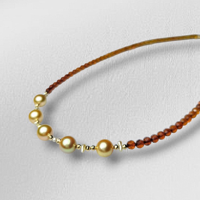 鑑別書付( Certificate )☆K18 AKOYA Sea Pearl(あこや本真珠)7.5〜8.0mm Amber(琥珀) AKOYA keshi Sea Pearl(あこや芥子真珠)☆necklace☆