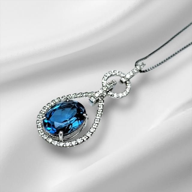 鑑別書付(Certificate )☆K18WG Blue topaz(ブルートパーズ)2.04ct D0.20ct☆Pendant Necklaces☆