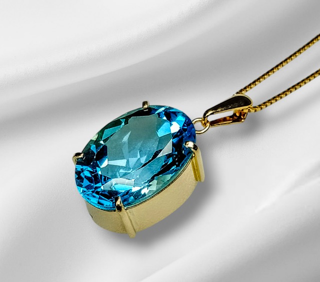 鑑別書付(Certificate )☆K18 Blue Topaz(ブルートパーズ)7.27ct☆Pendant Necklaces☆