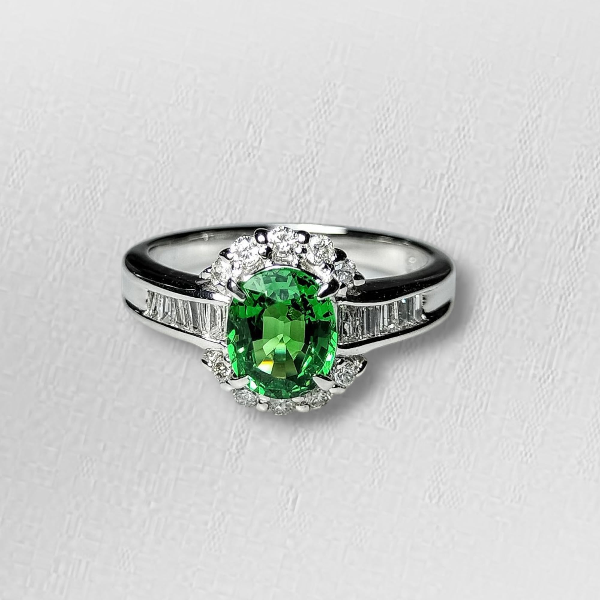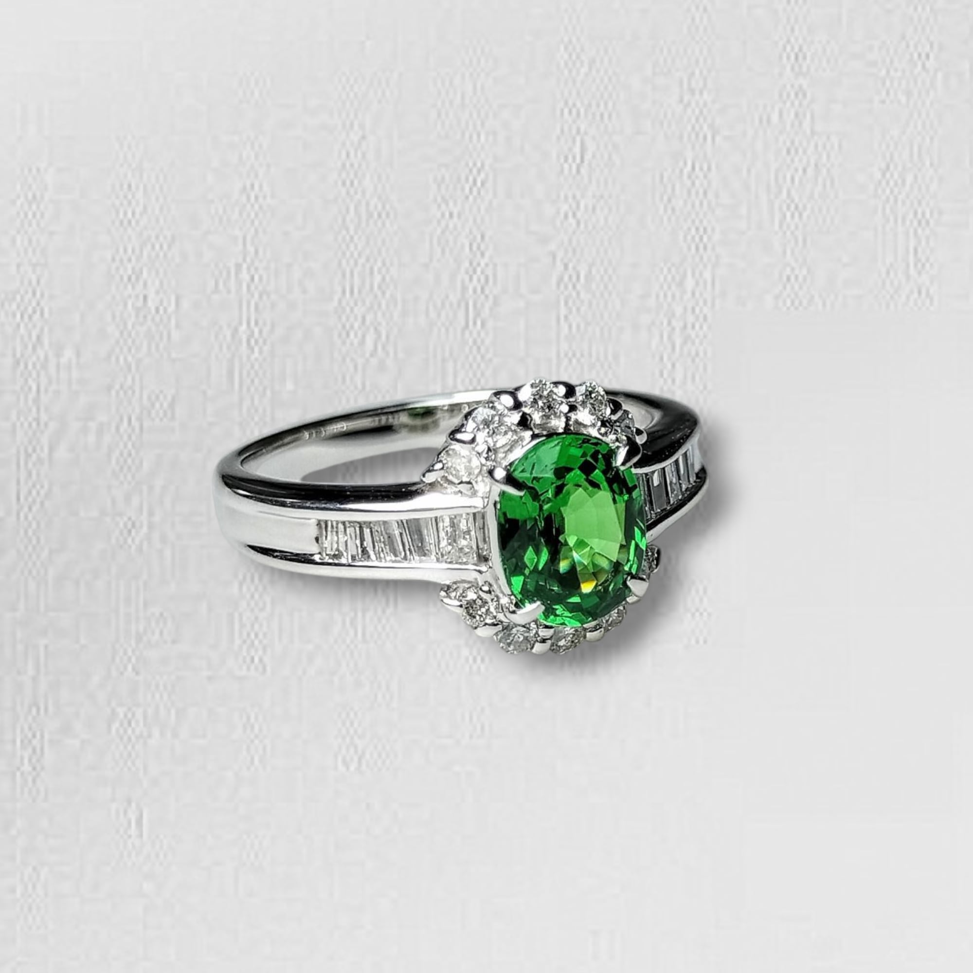 Pt GreenGarnet Diamond Ring