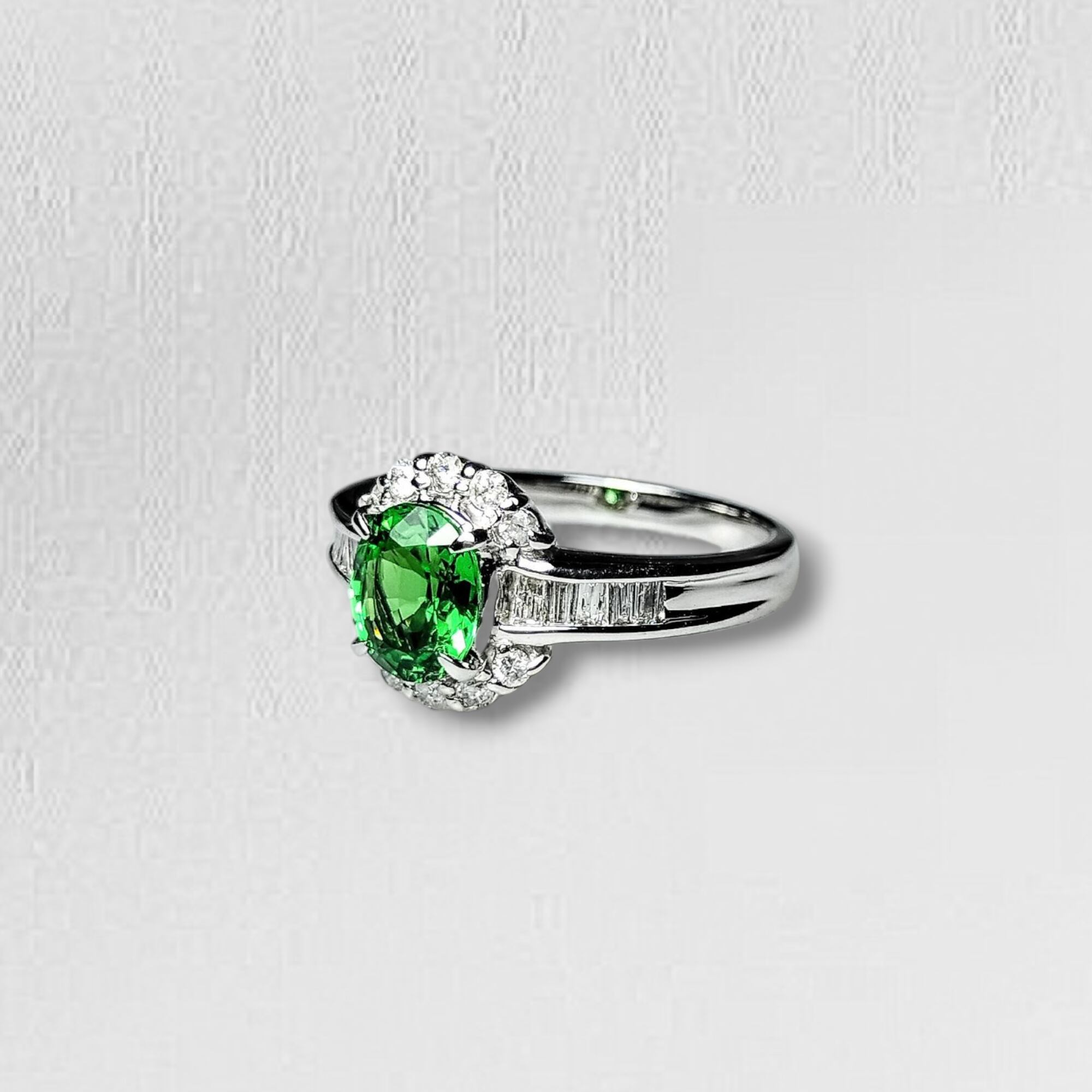 鑑別書付(Certificate )☆Pt GreenGarnet(グリーンガーネット)1.13ct D0.35ct☆Ring☆
