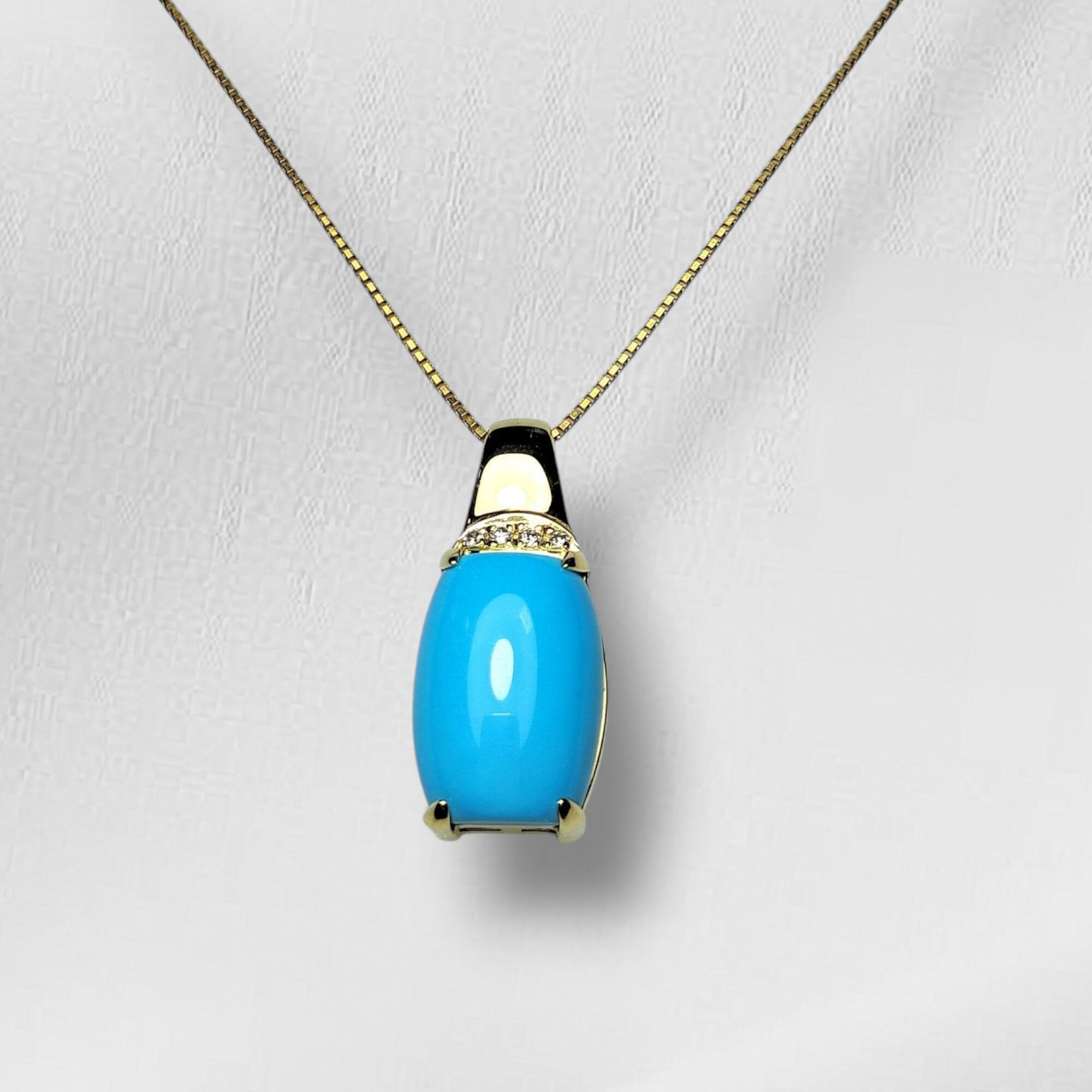 鑑別書付(Certificate )☆K18 Turquoise(天然トルコ石)7.18ct D0.04ct☆Pendant Necklaces☆