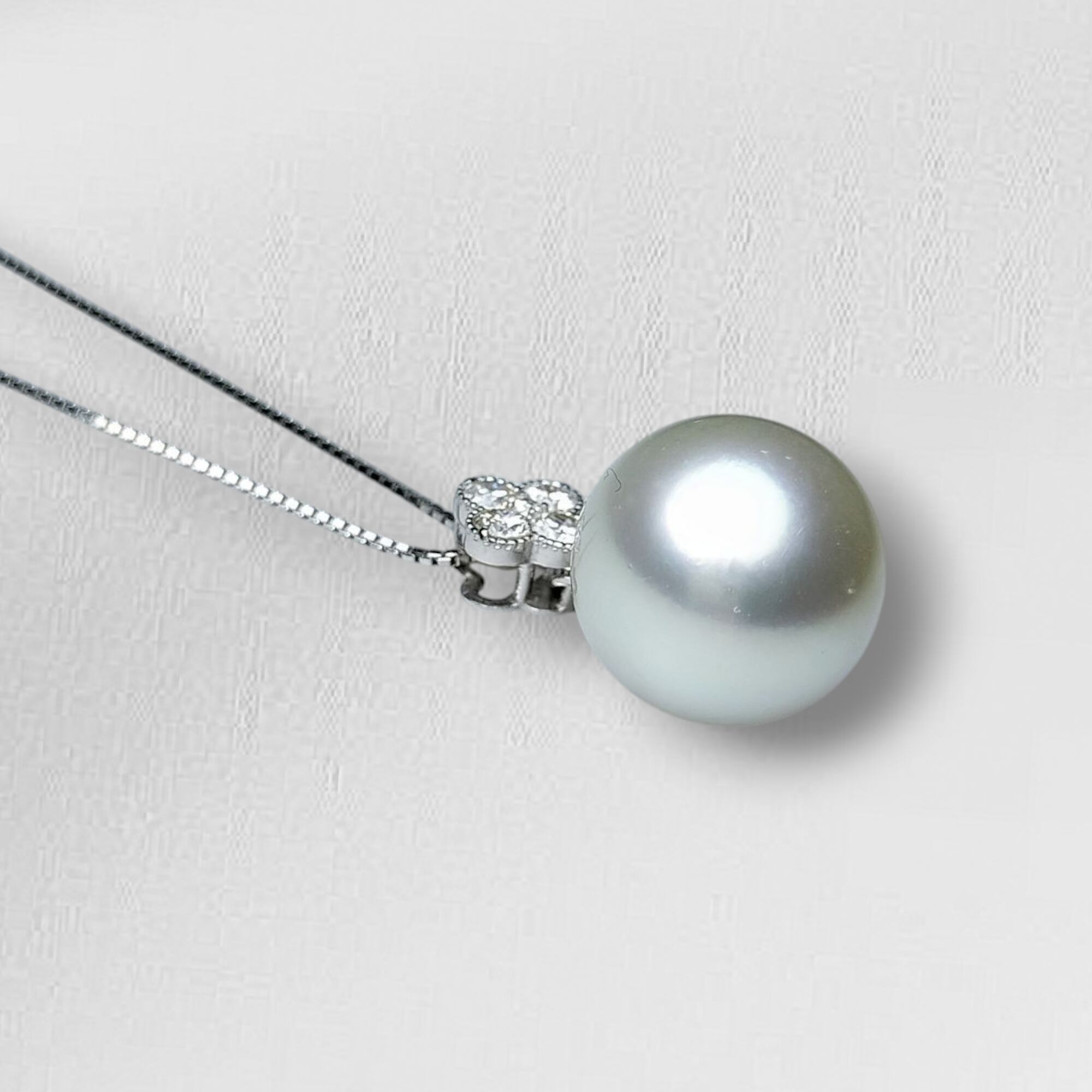 鑑別書付(Certificate )☆K18WG South Sea Pearl (南洋真珠) 13.0mm D0.28ct☆Pendant Necklaces☆