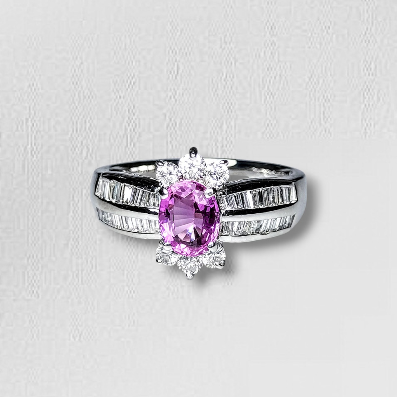 鑑別書付(Certificate )☆Pt PinkSapphire(ピンクサファイア)0.953ct D0.60ct☆Ring☆