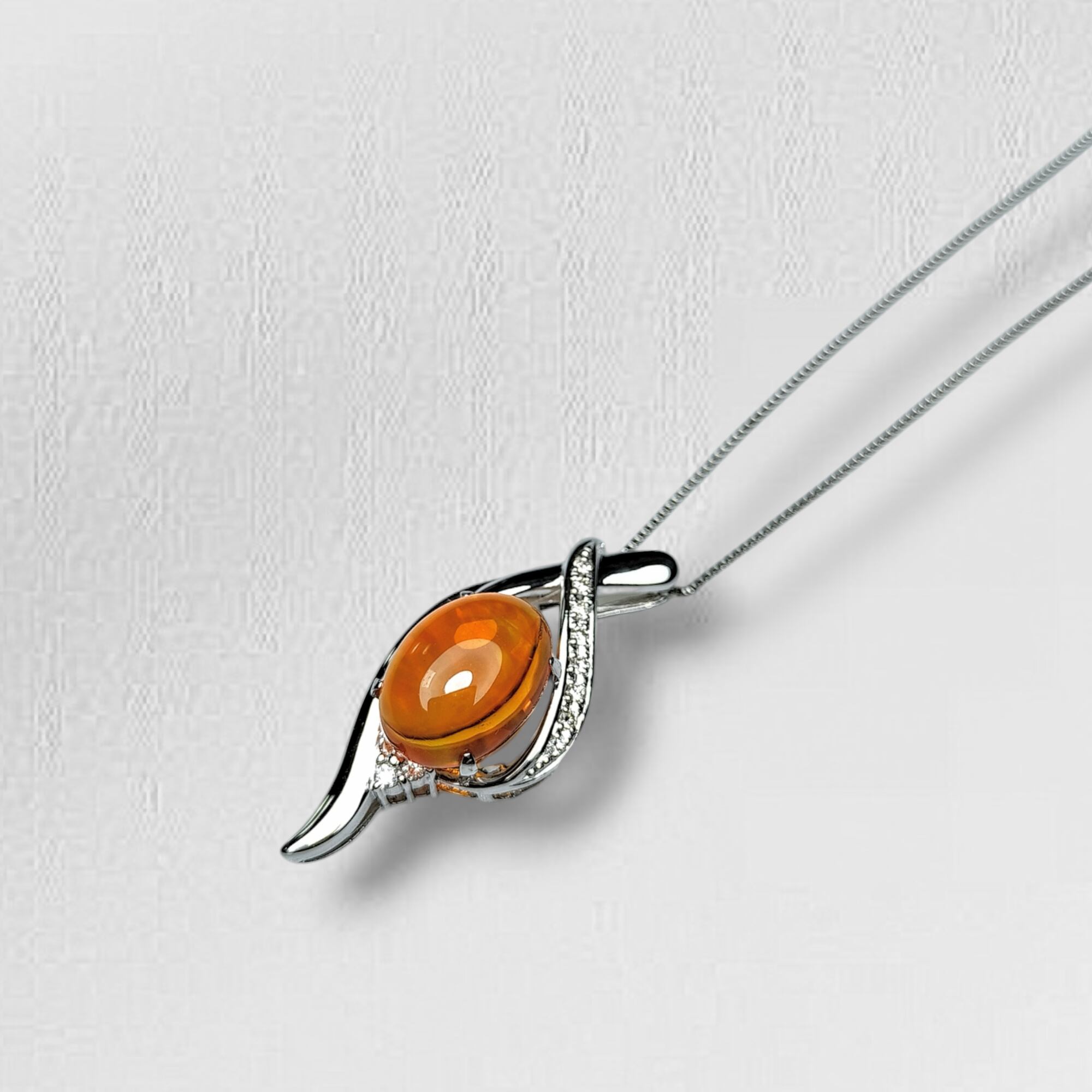 Pt MexicanOpal Diamond Pendant Necklaces