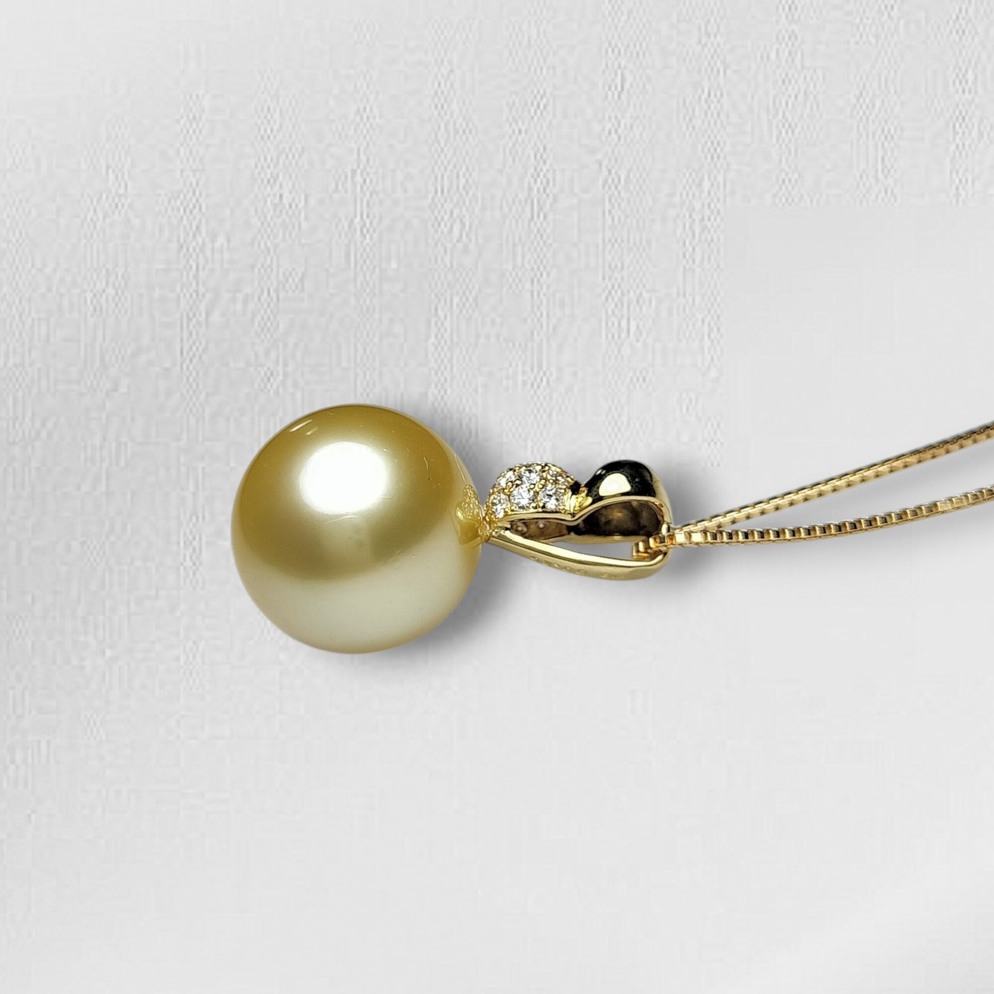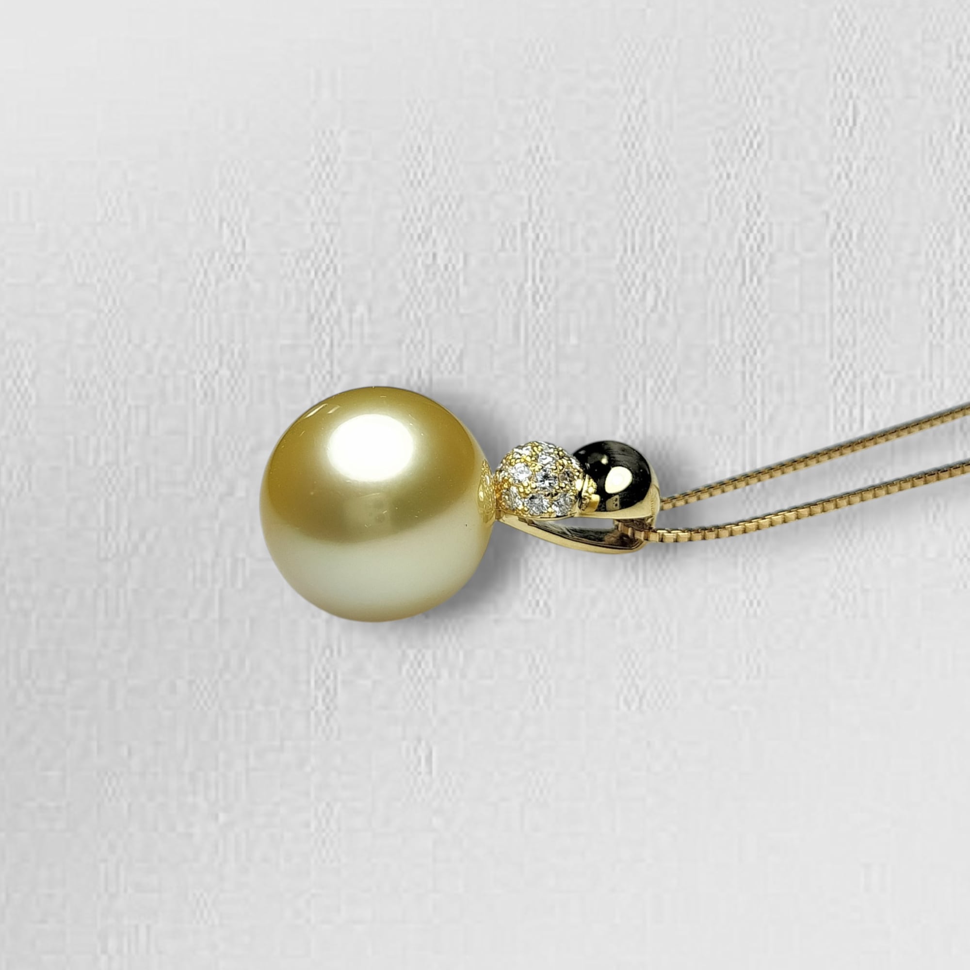 70万円↓50%OFF☆オーロラ ムーンレインボー鑑別書付(Certificate )☆K18 South Sea Pearl (南洋真珠) 14.2mm D0.25ct☆天然ゴールド☆Pendant Necklaces☆