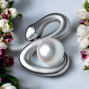 鑑別書付(Certificate )☆SV AKOYA Sea Pearl (あこや本真珠) 6.3mm ☆Snake(蛇)☆brooch☆