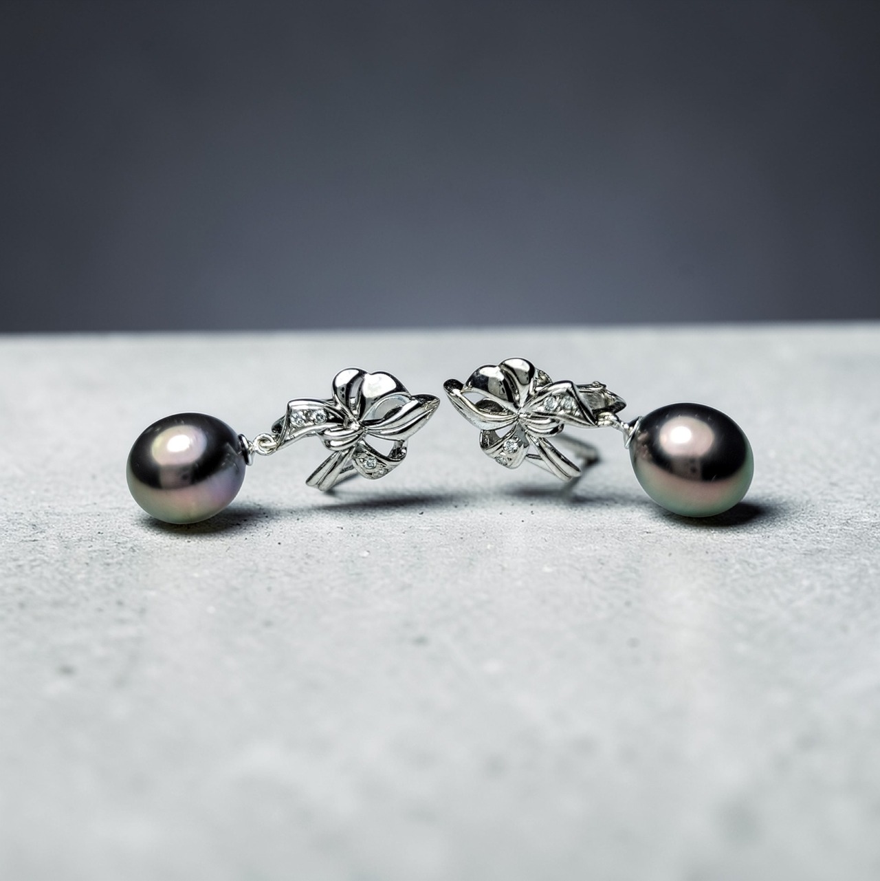 ✦K14WG 南洋黒蝶真珠 ネジバネイヤリング