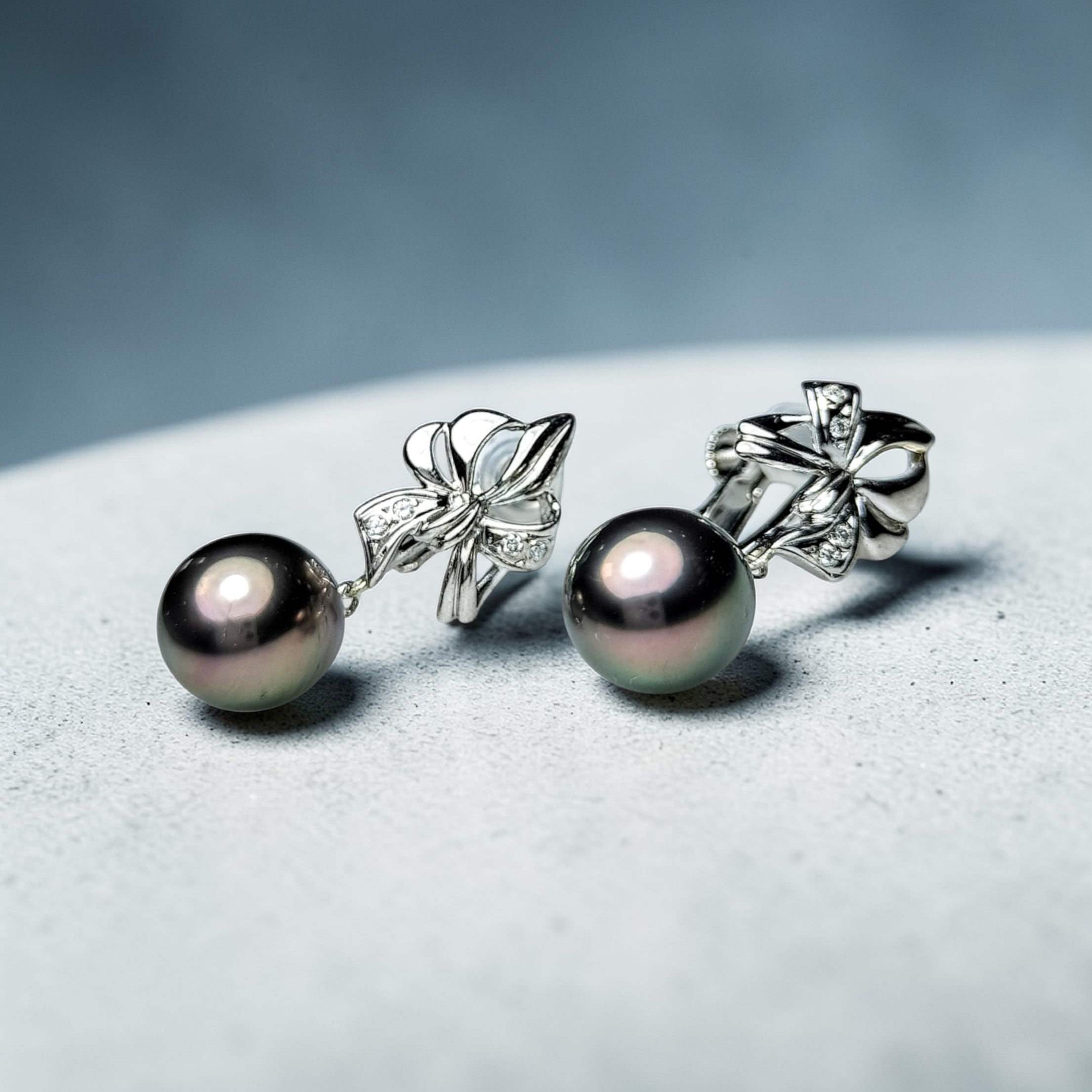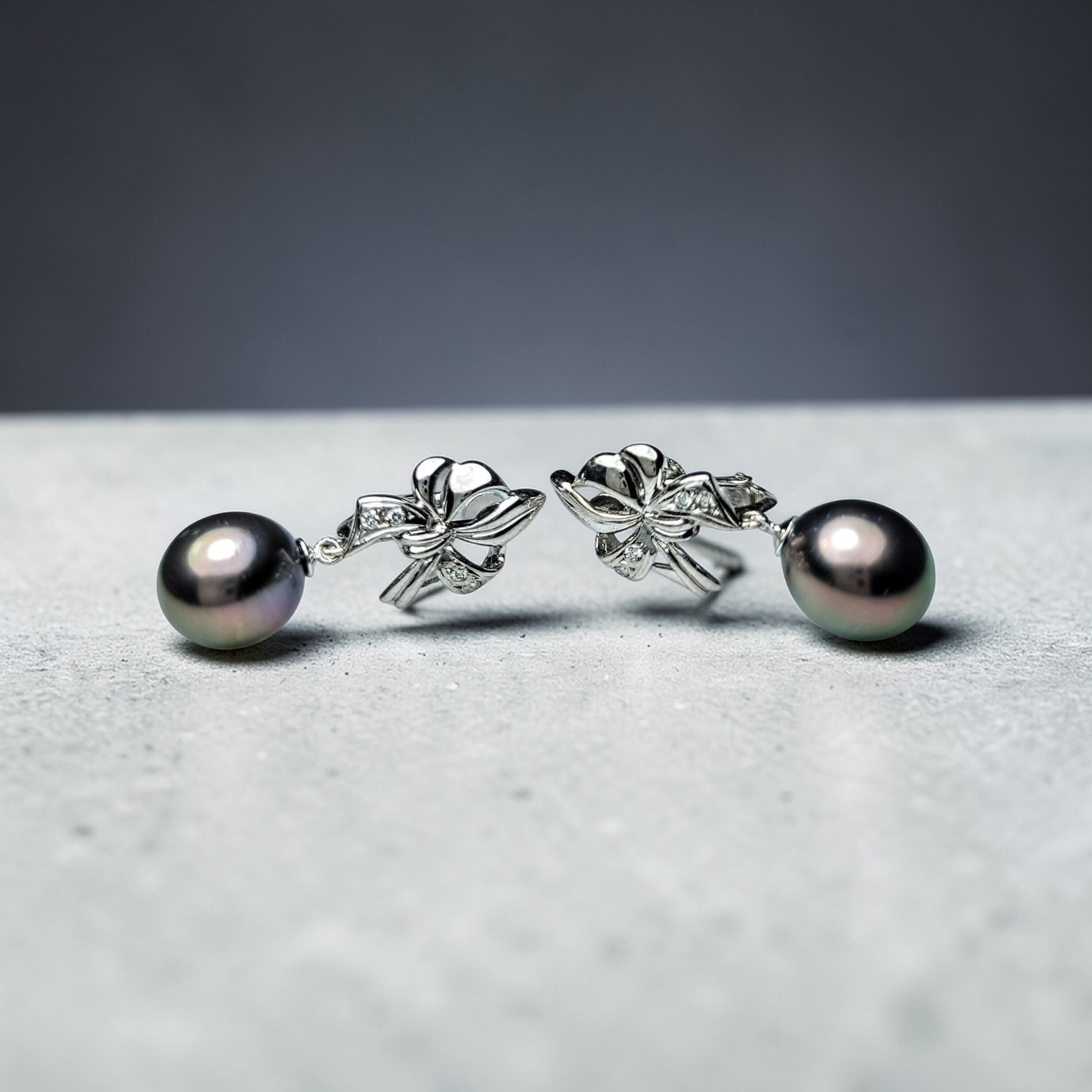 鑑別書付(Certificate )☆K14WG South Sea Black Pearl(南洋黒蝶真珠)9mmup☆Peacock Color☆Earrings(ネジバネイヤリング)☆