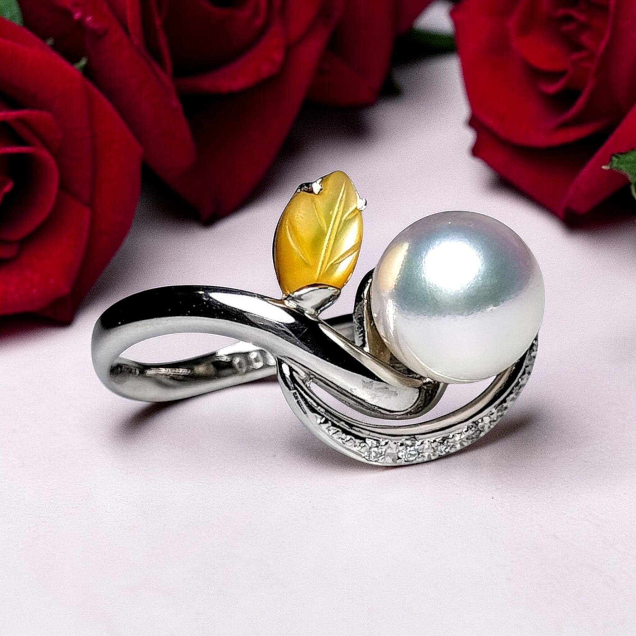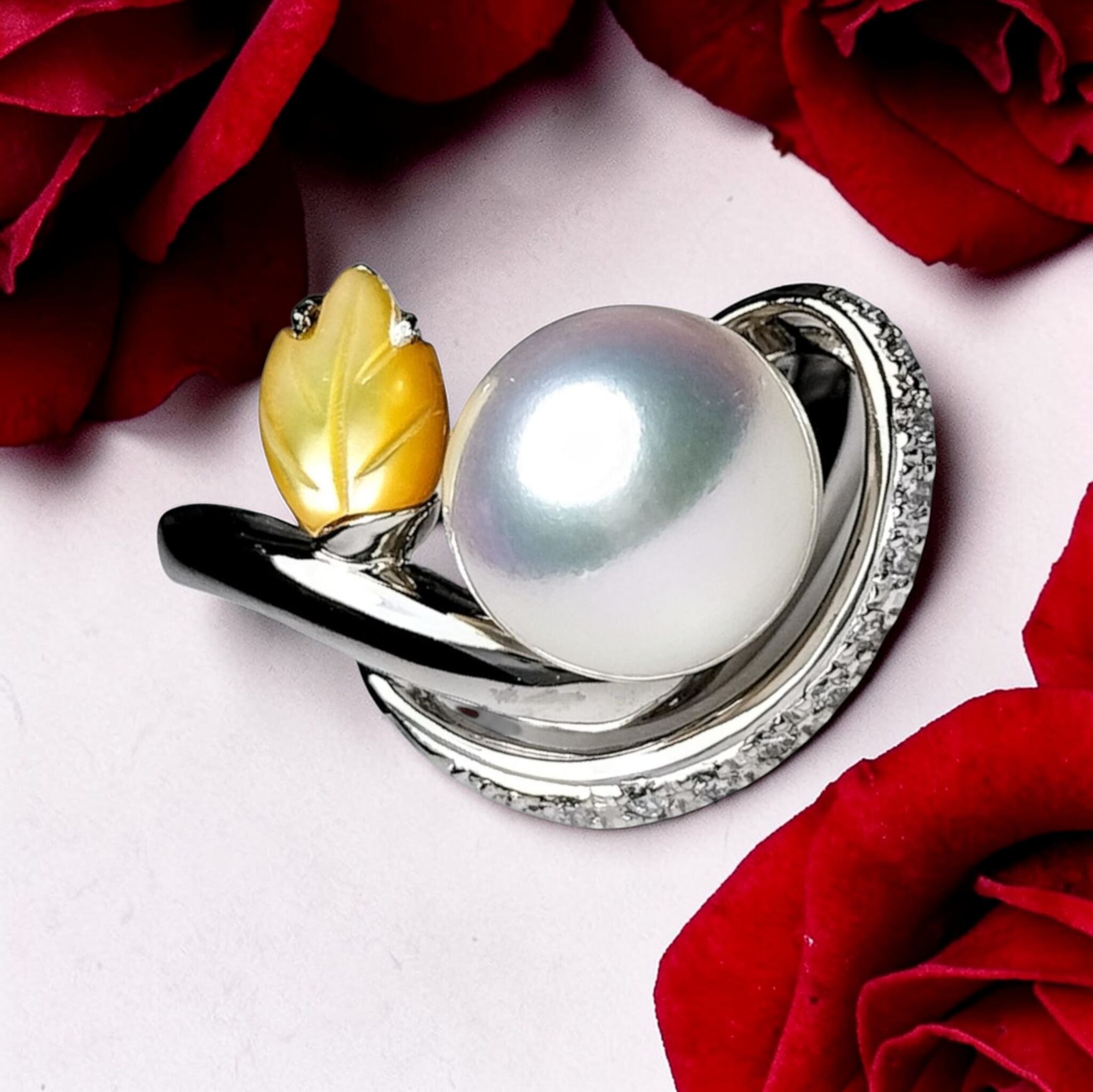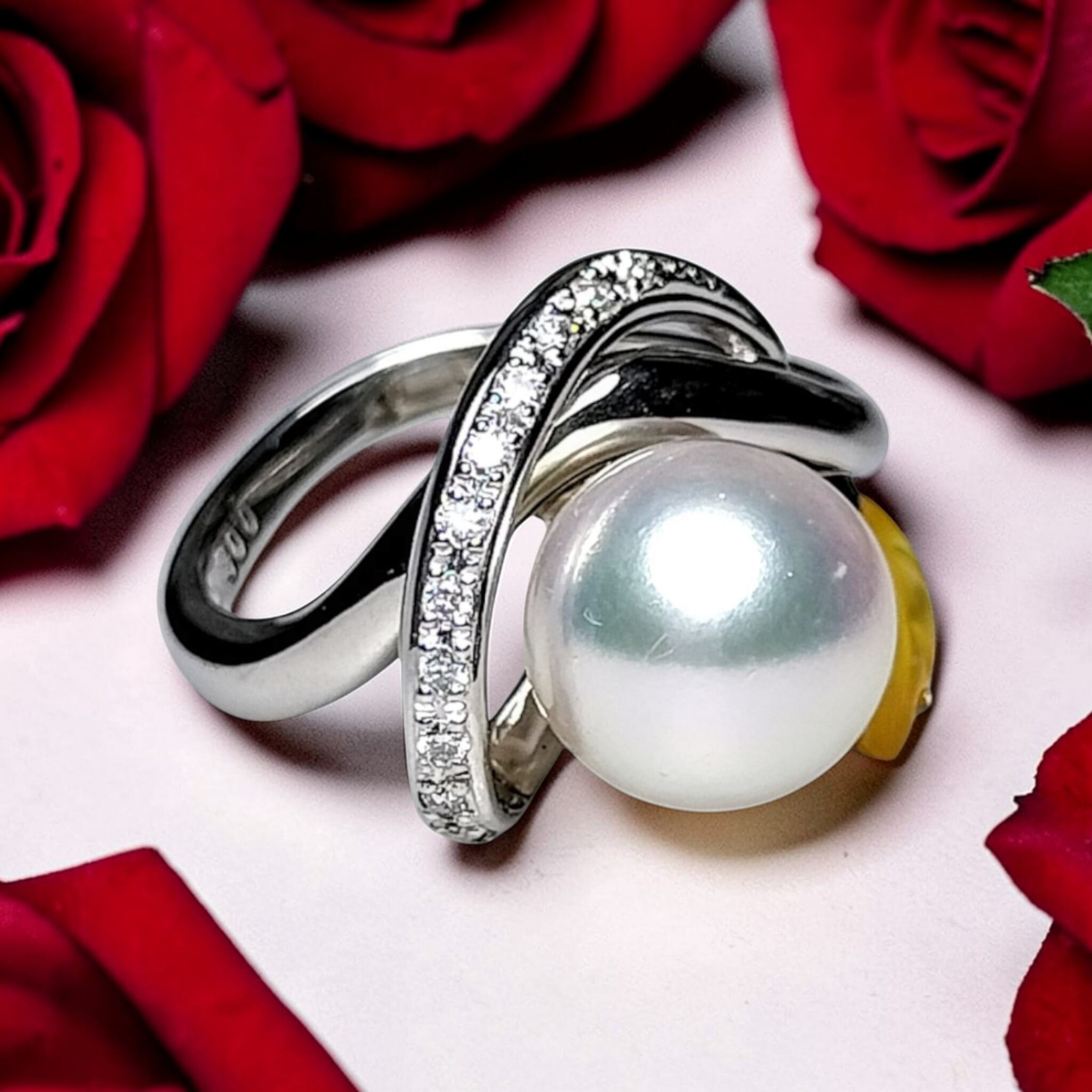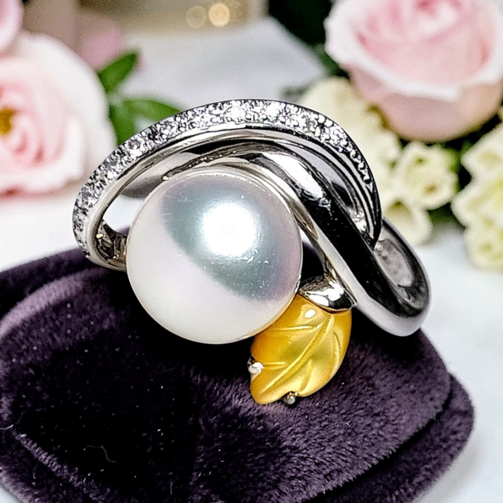 鑑別書付(Certificate )☆Pt AKOYA Sea Pearl (あこや本真珠) 9.4mm D0.09ct Shell(シェル)☆Ring☆