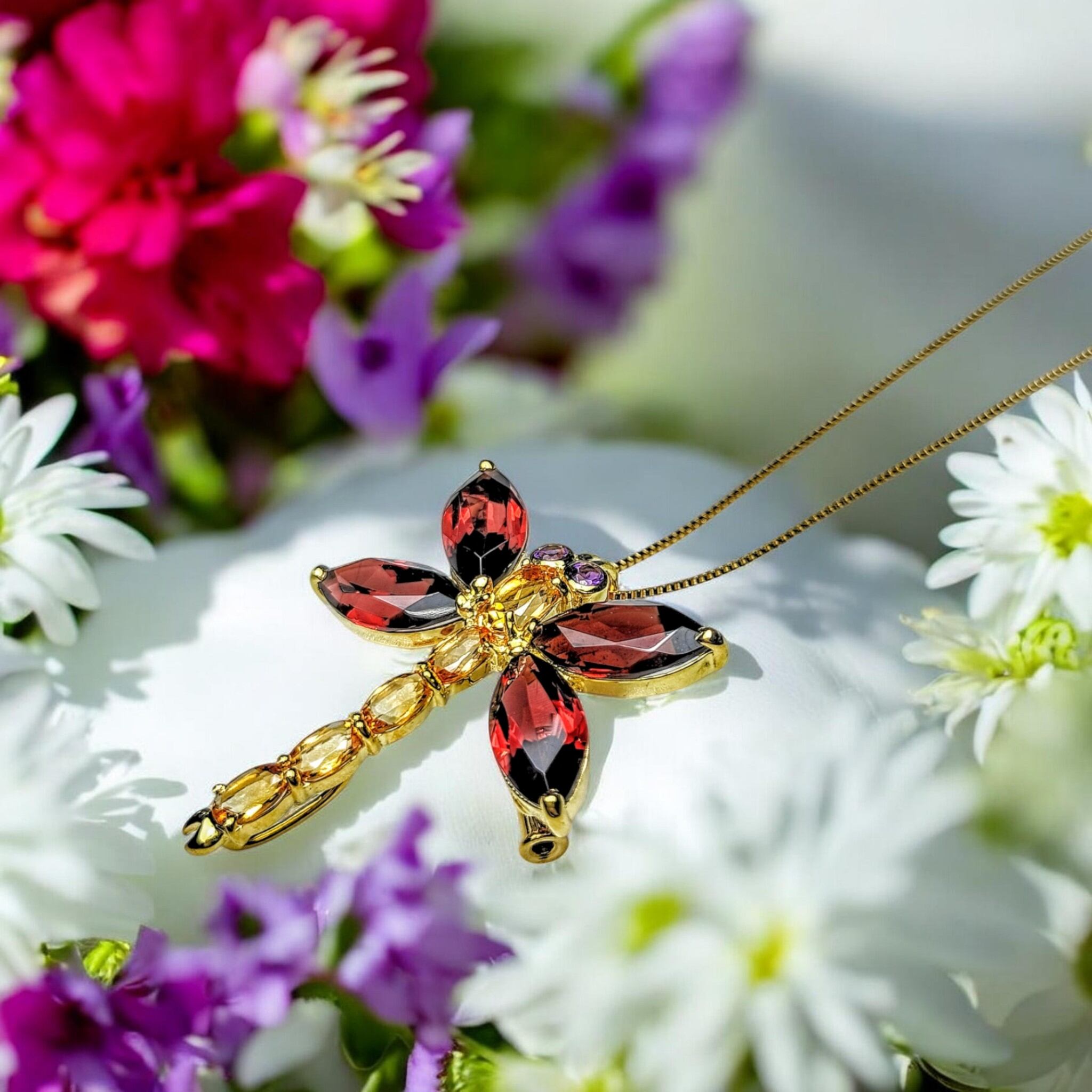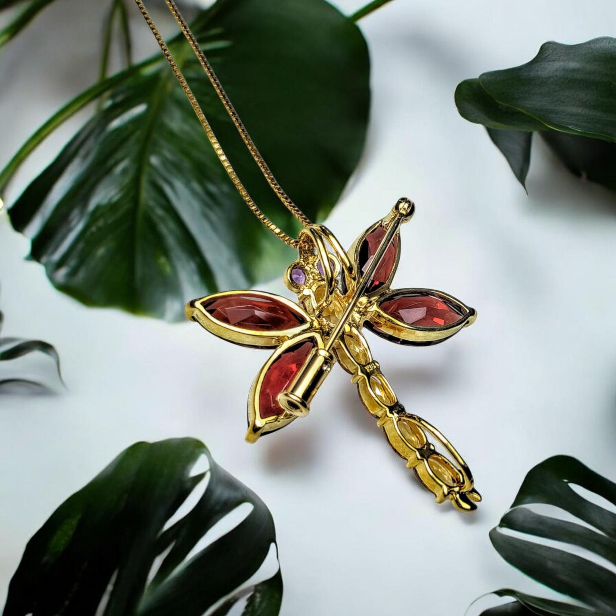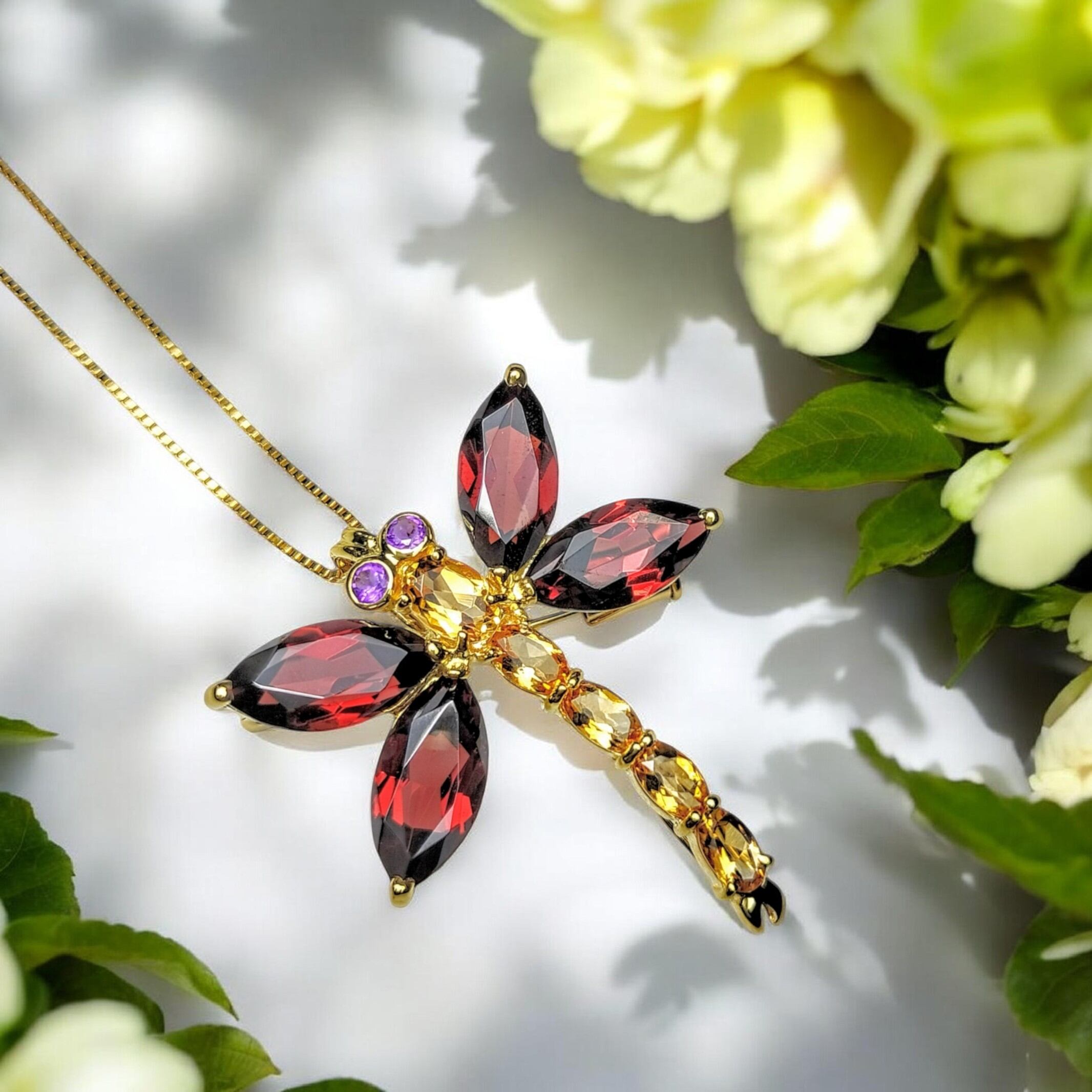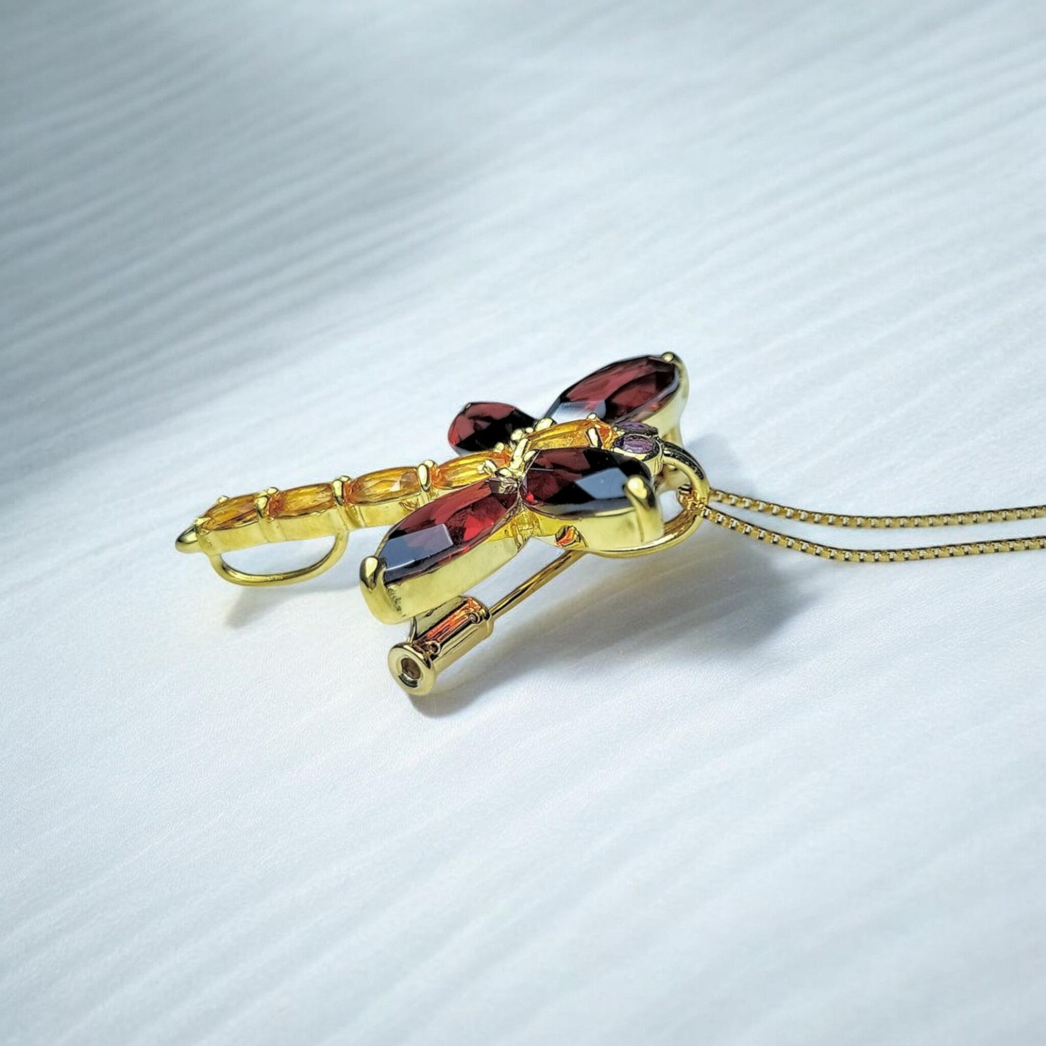 K18 Garnet Amethyst Citrine Brooch PendantNecklace