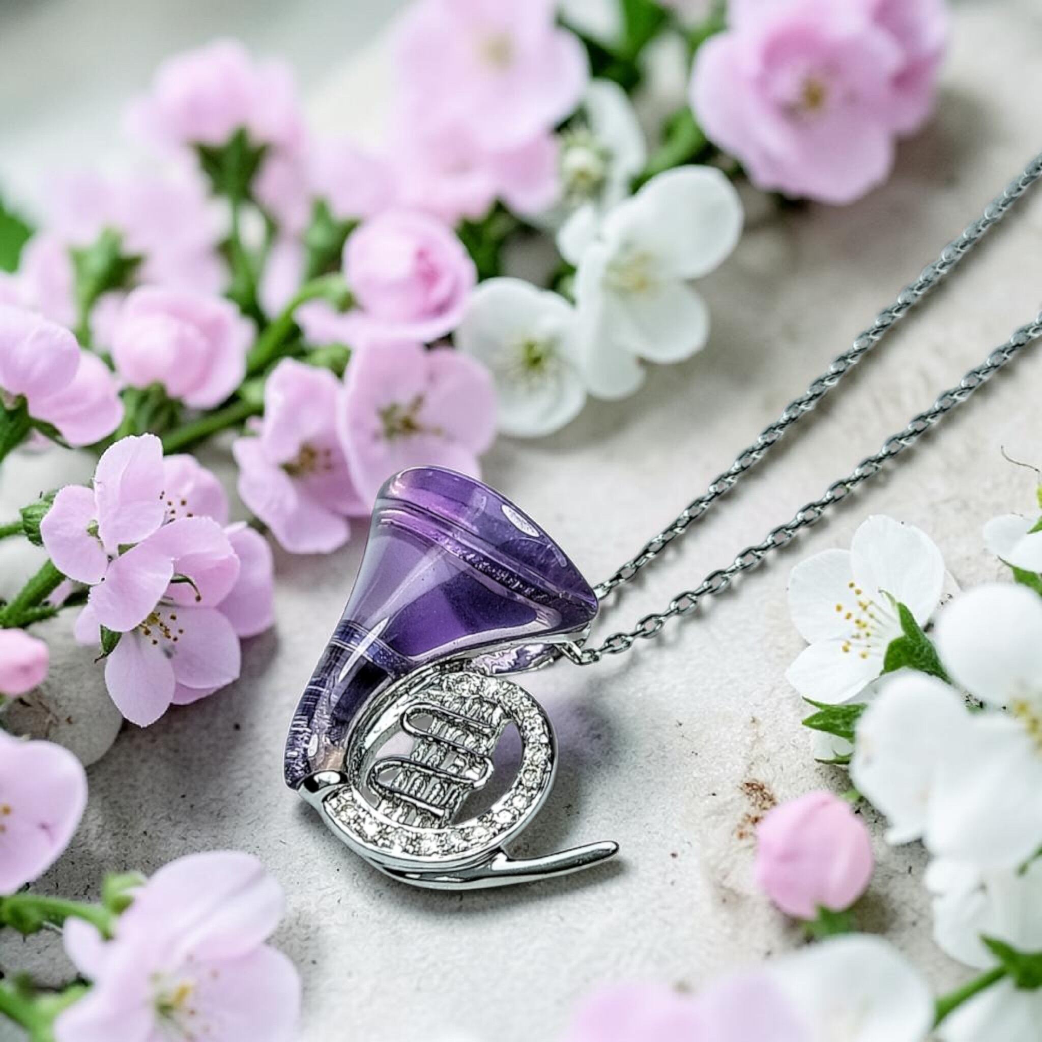 鑑別書付(Certificate )☆K18WG Amethyst(アメジスト) D0.04ct✩Pendant Necklaces✩