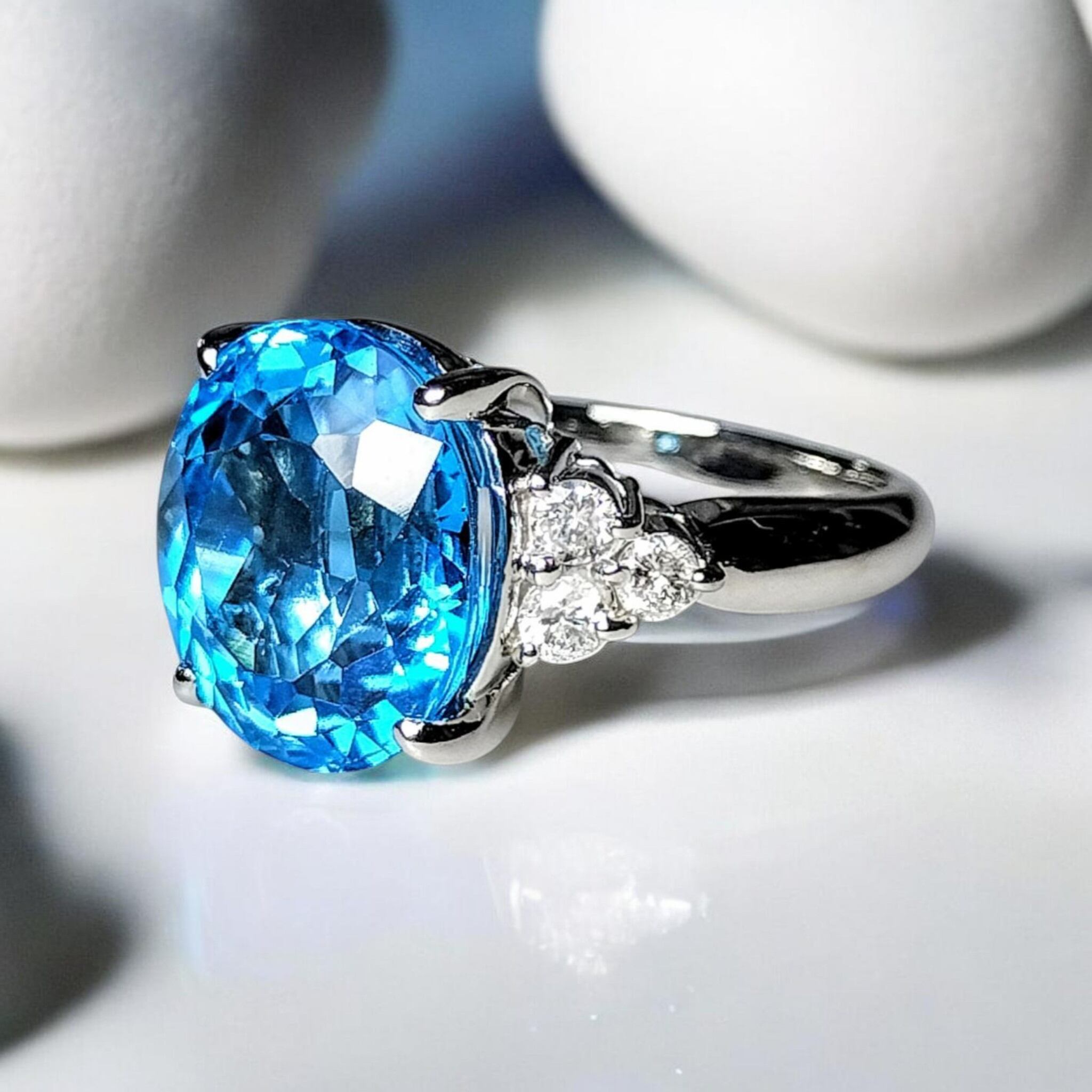 鑑別書付(Certificate )☆Pt BlueTopaz(ブルートパーズ)8.93ct D0.36ct☆Ring☆
