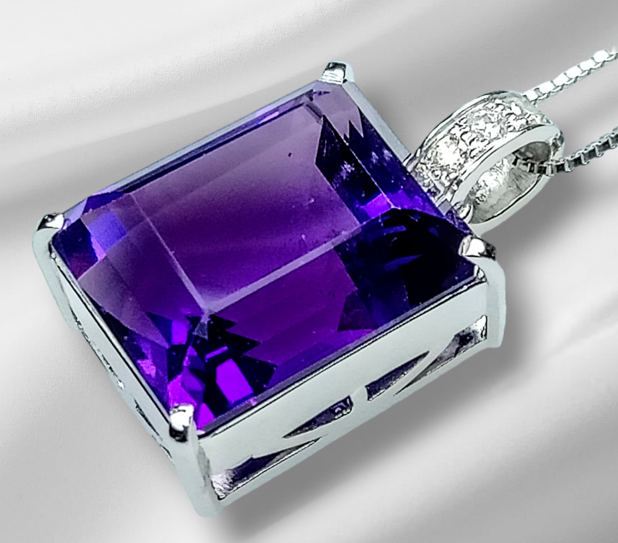 鑑別書付(Certificate )☆Pt Amethyst(アメジスト)15.43ct D0.10ct☆Pendant Necklaces☆