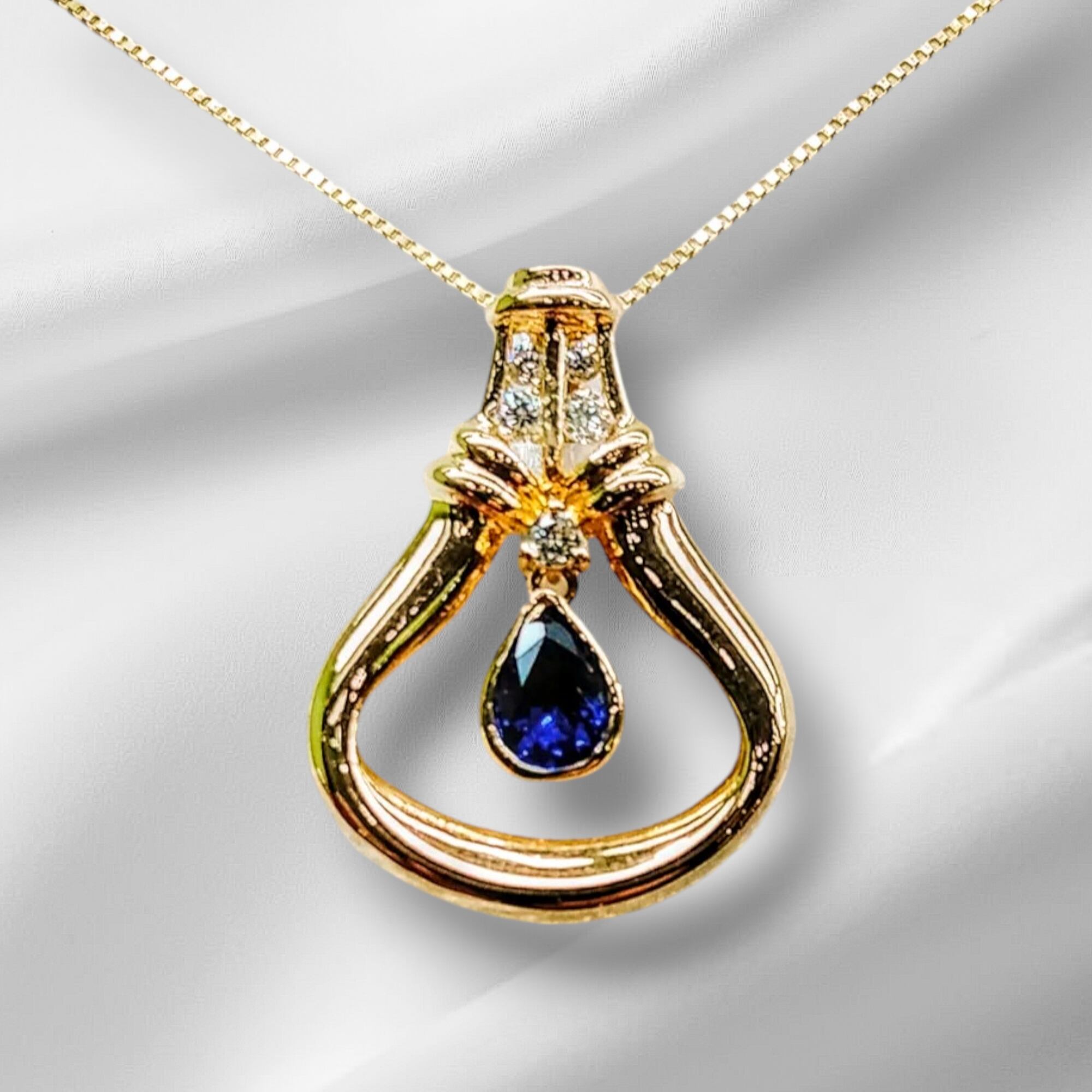 鑑別書付(Certificate )☆K18 Sapphire(サファイア)0.35ct D0.10ct☆Pendant Necklaces☆