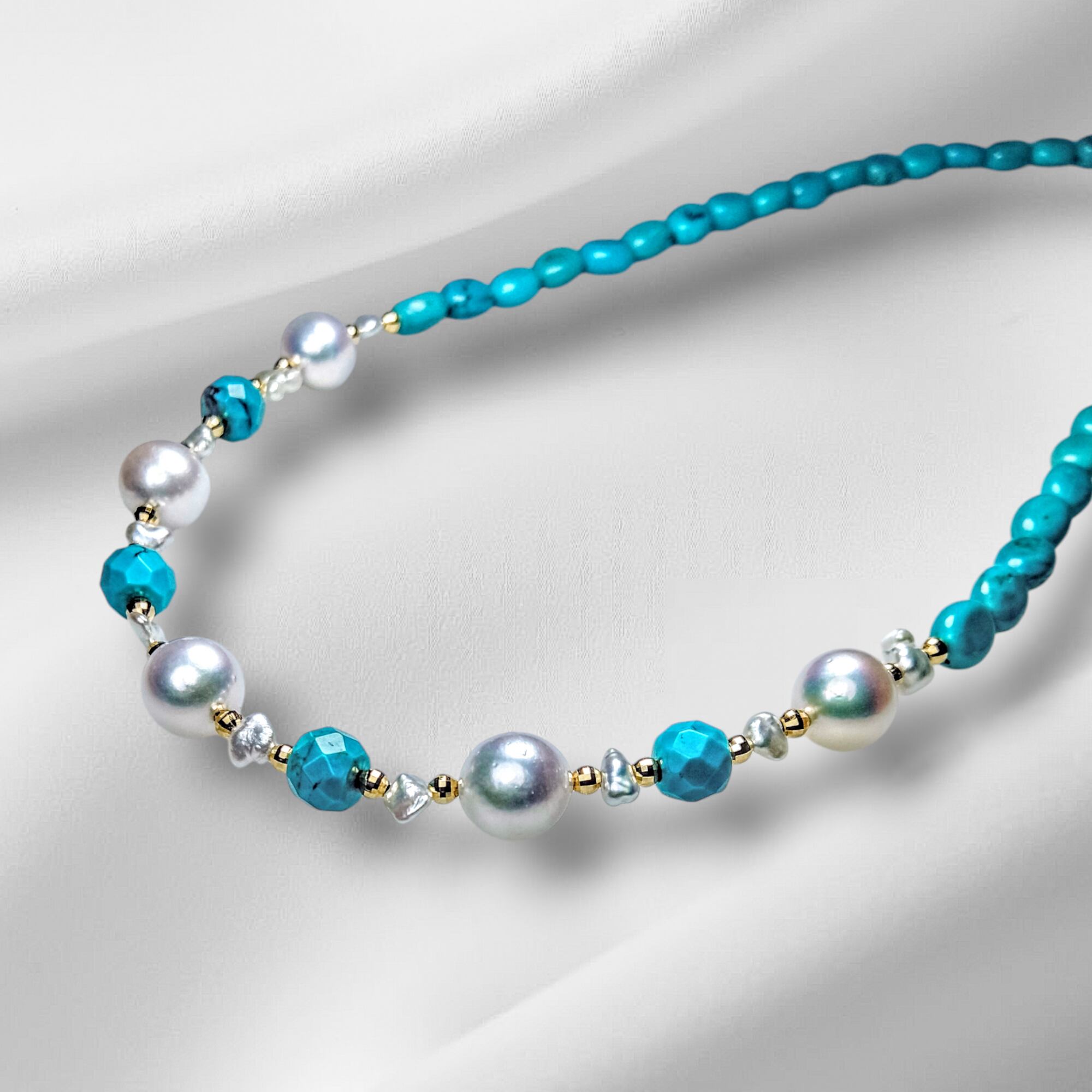 K18 あこや本真珠 天然トルコ石ネックレス