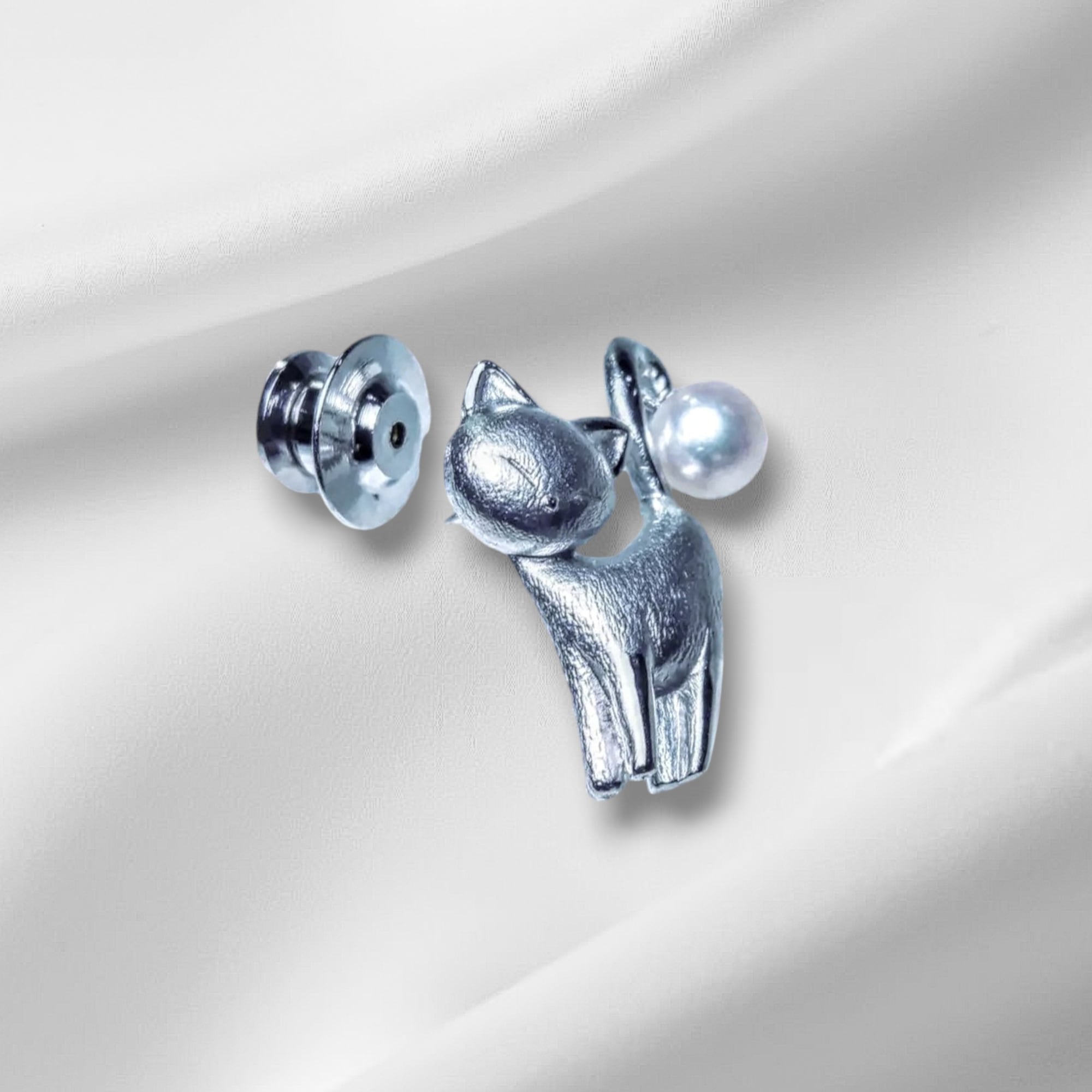 鑑別書付(Certificate )☆SV AKOYA Sea Pearl (あこや本真珠) 6.1mm ☆猫☆brooch☆