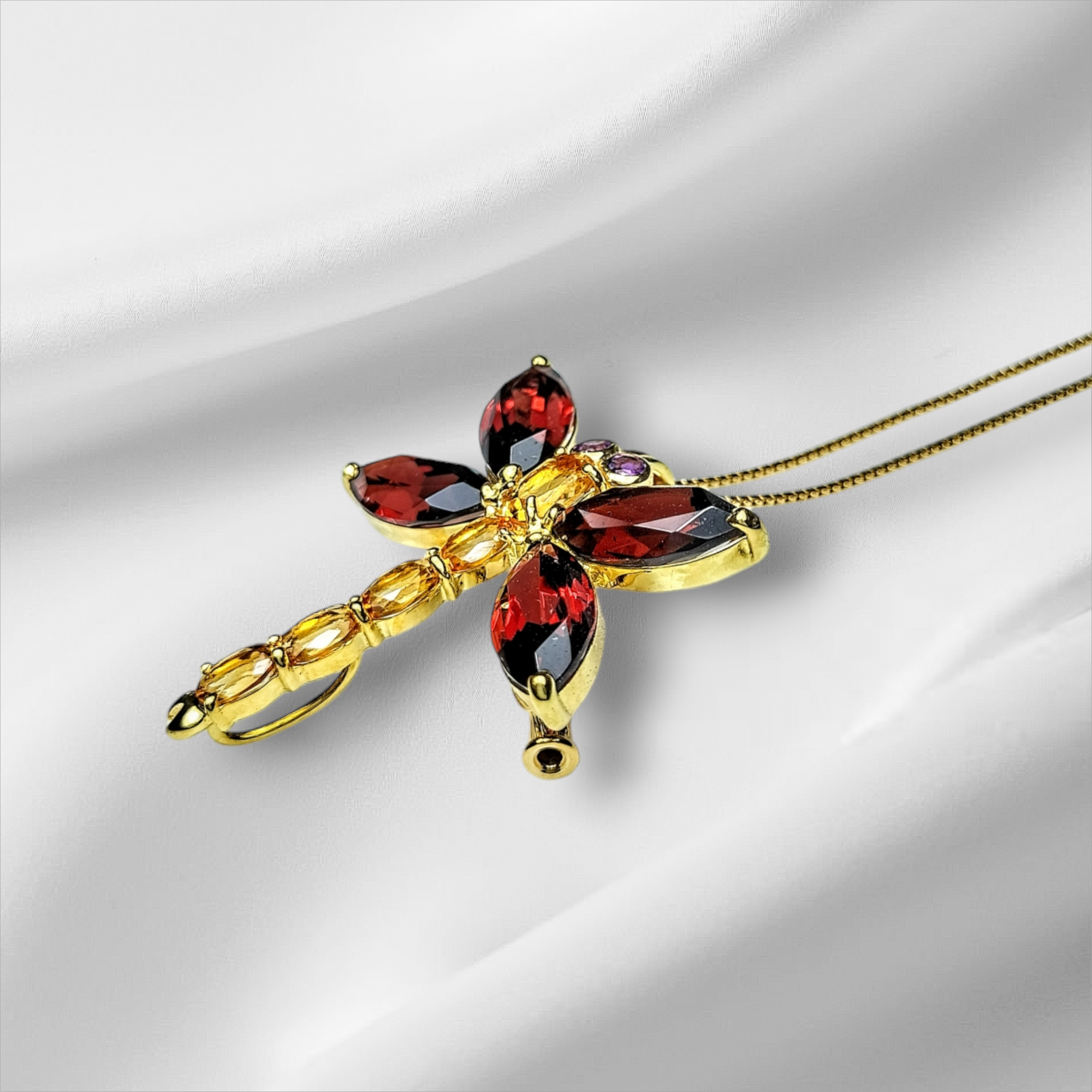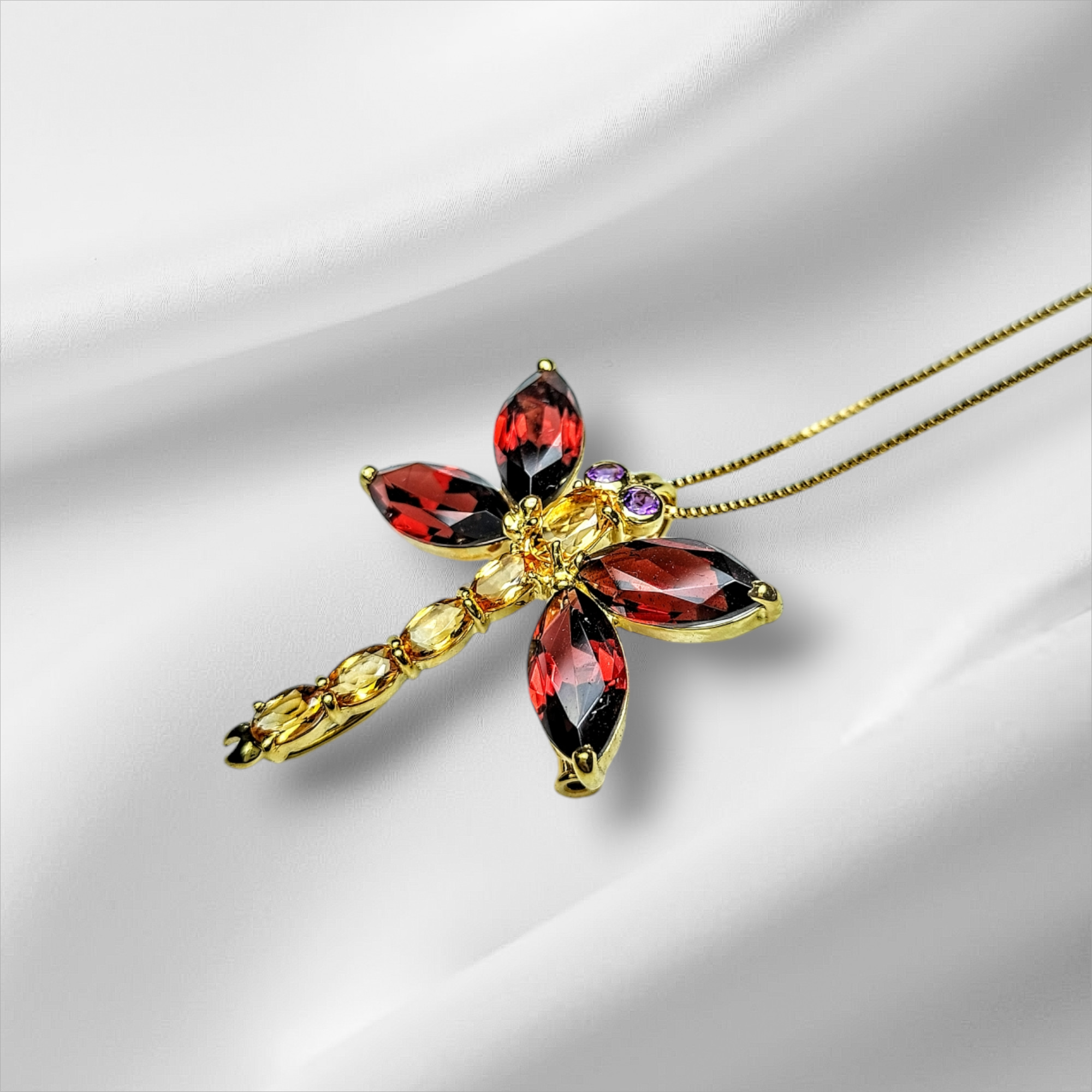 K18 Garnet Amethyst Citrine Brooch PendantNecklace