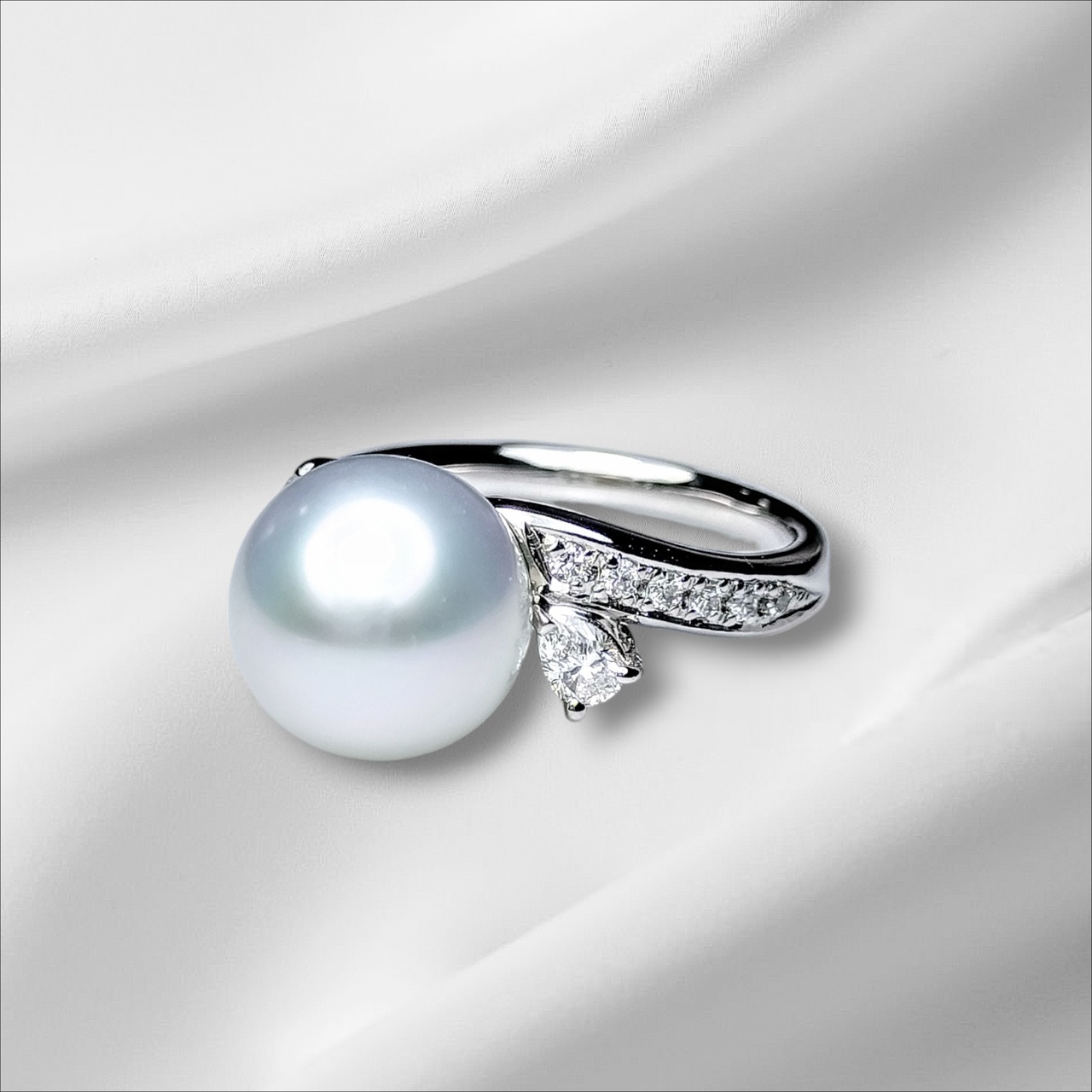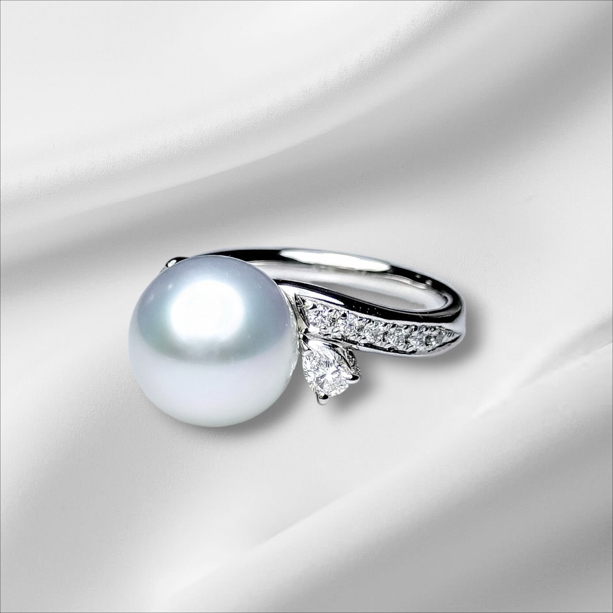 花珠鑑別書付 南洋真珠リングは、滑らかな真珠の煌めきが 上品で高級感のある雰囲気を演出してくれます。