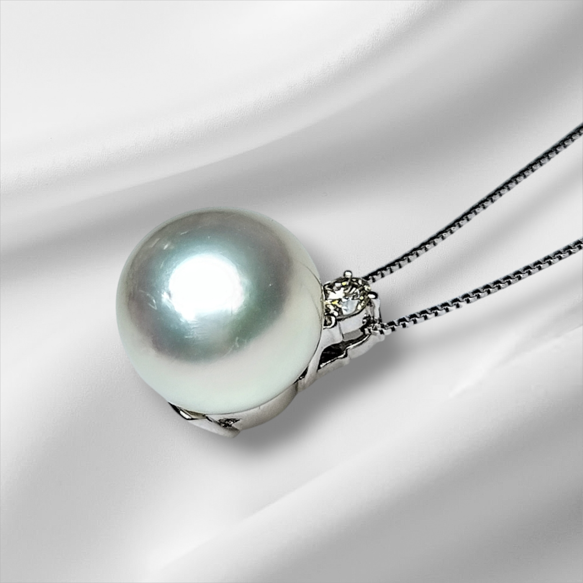 鑑別書付(Certificate )☆K18WG South Sea Pearl (南洋真珠) 11.9mm D0.18ct☆Pendant Necklaces☆