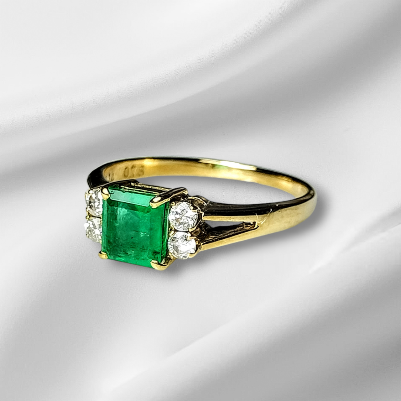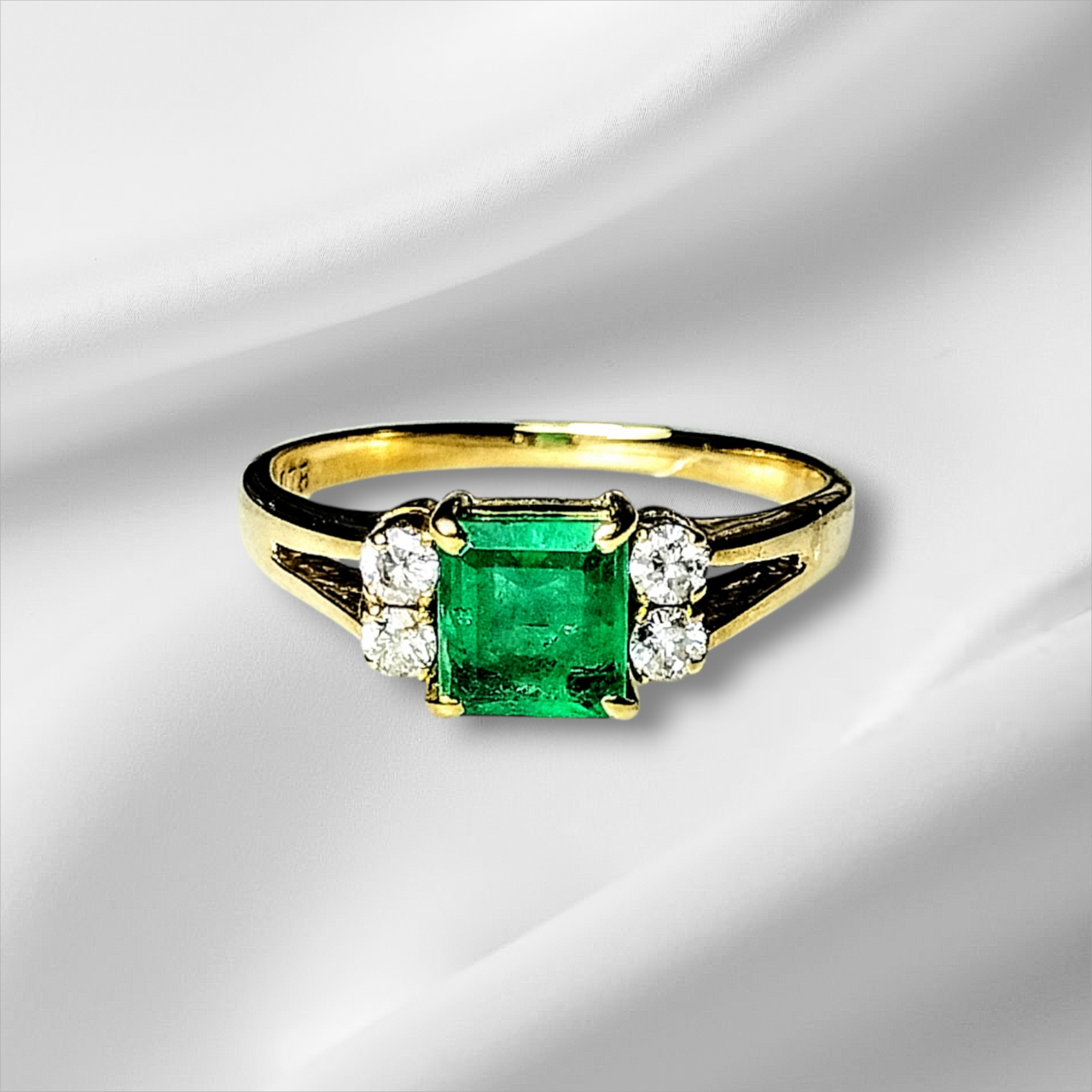 鑑別書付(Certificate )☆K18 Emerald(エメラルド)0.78ct D0.14ct☆Ring☆