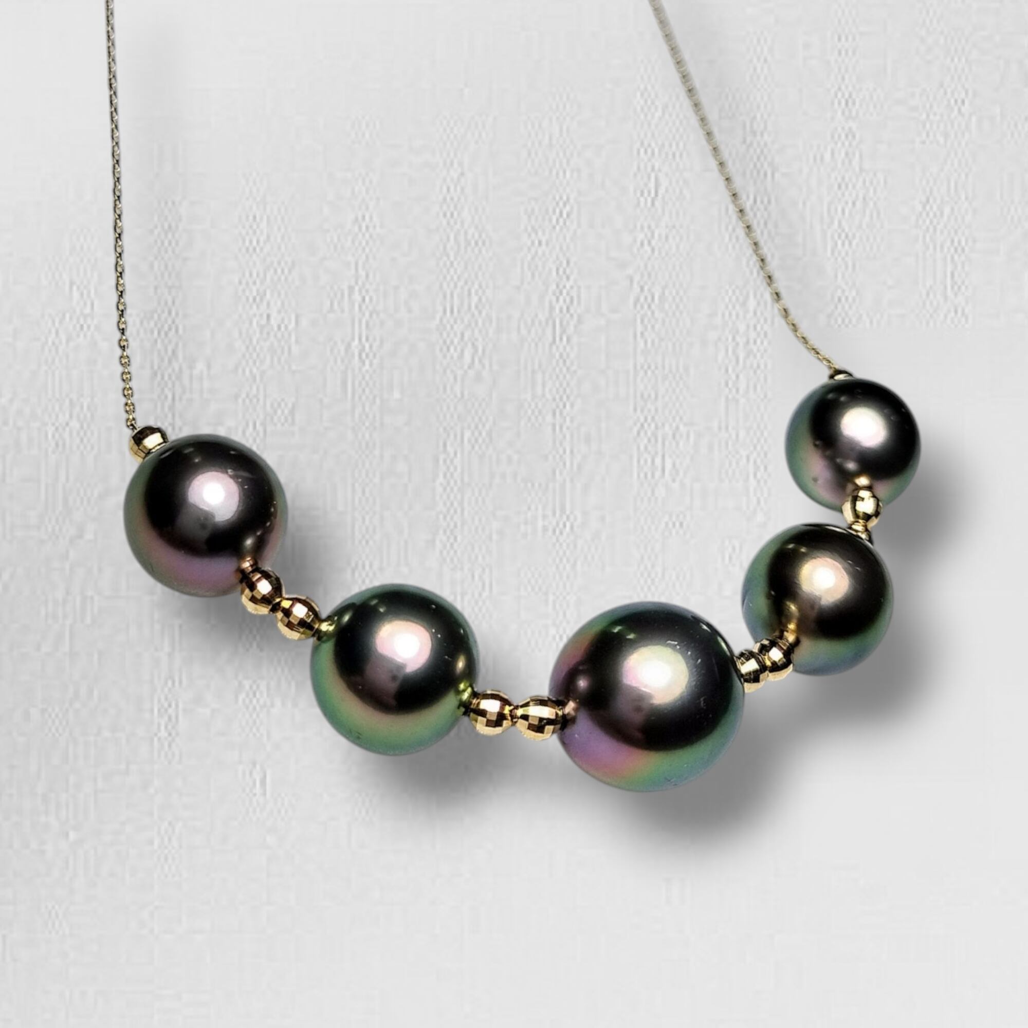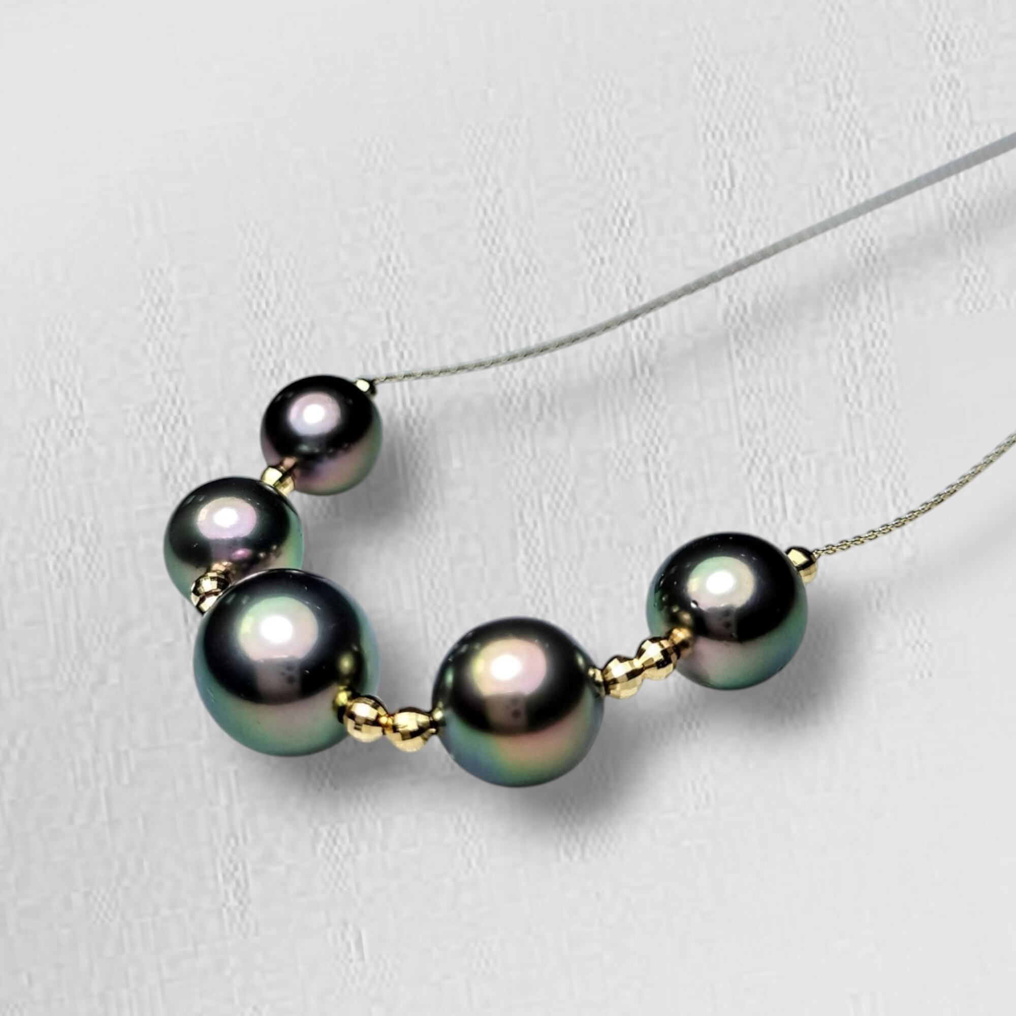 鑑別書付(Certificate )☆K18 South Sea Black Pearl(南洋黒蝶真珠)9.8〜8.5mm☆Peacock Color☆Necklace☆
