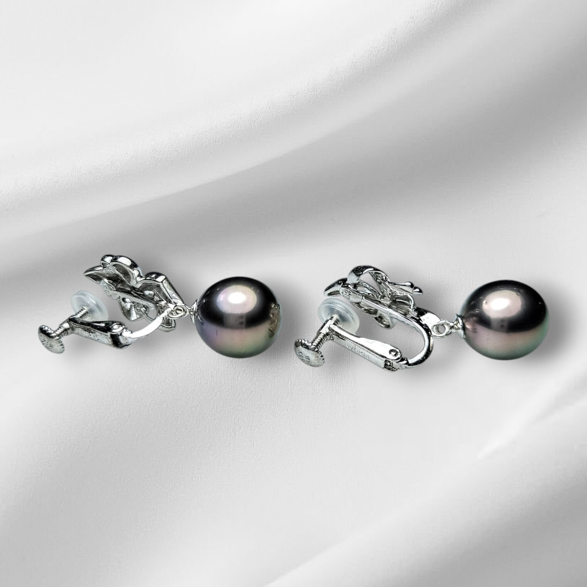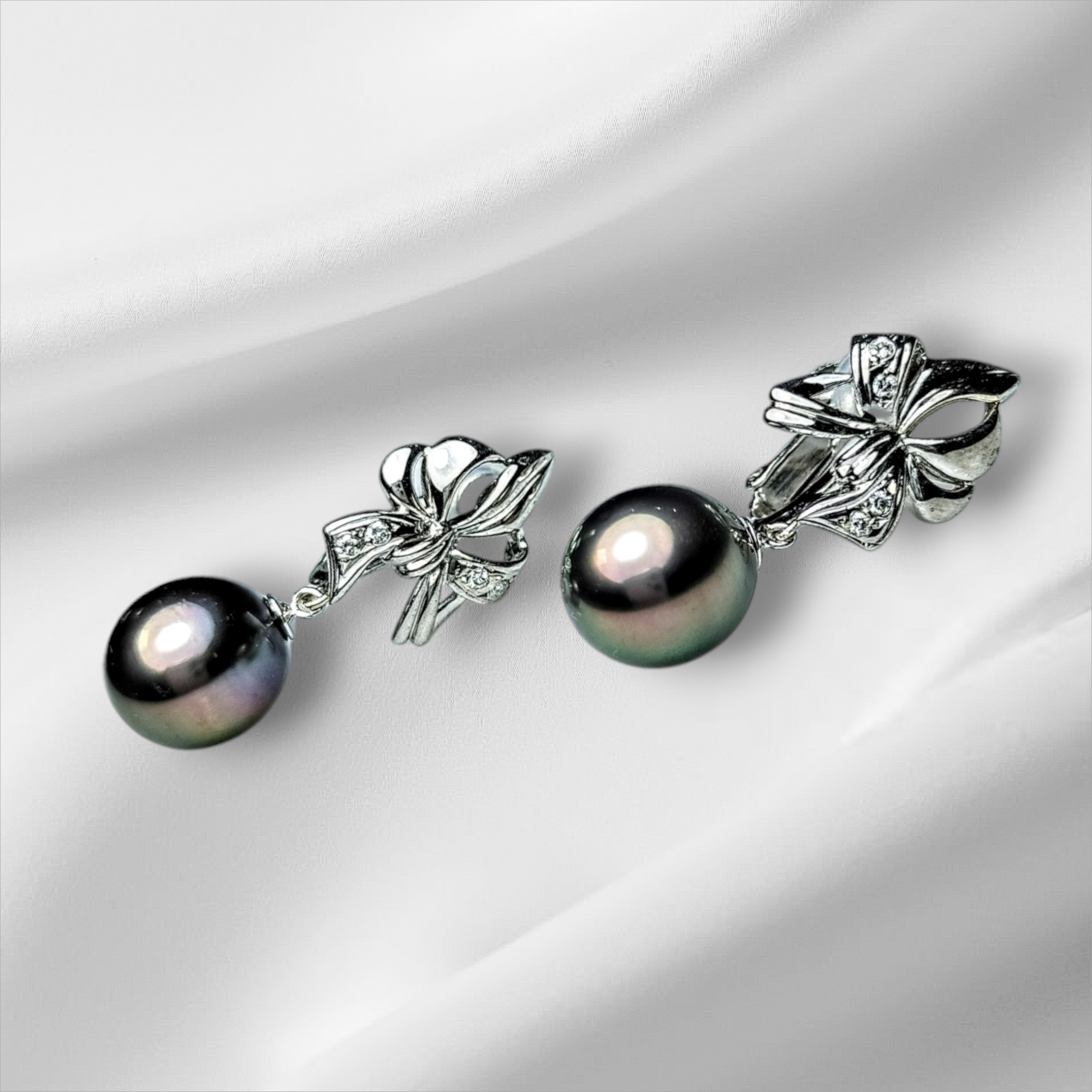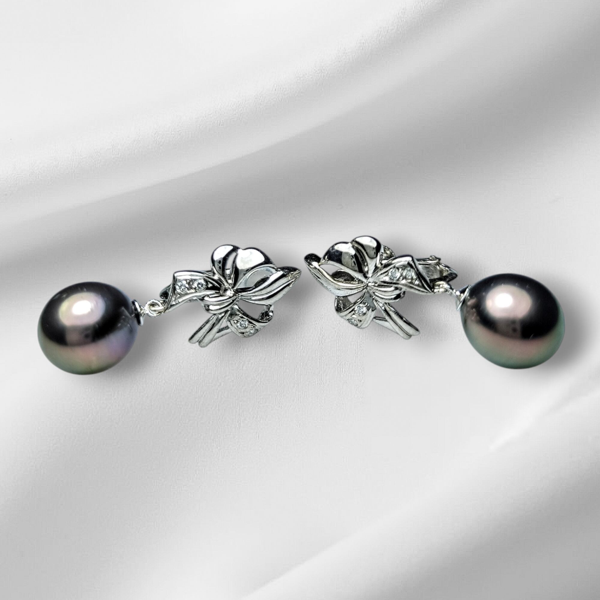 鑑別書付(Certificate )☆K14WG South Sea Black Pearl(南洋黒蝶真珠)9mmup☆Peacock Color☆Earrings(ネジバネイヤリング)☆