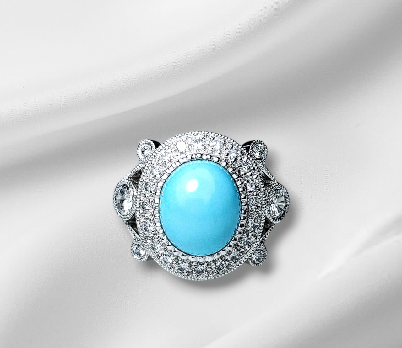 鑑別書付(Certificate )☆Pt Turquoise(天然トルコ石) D0.80ct☆Ring☆