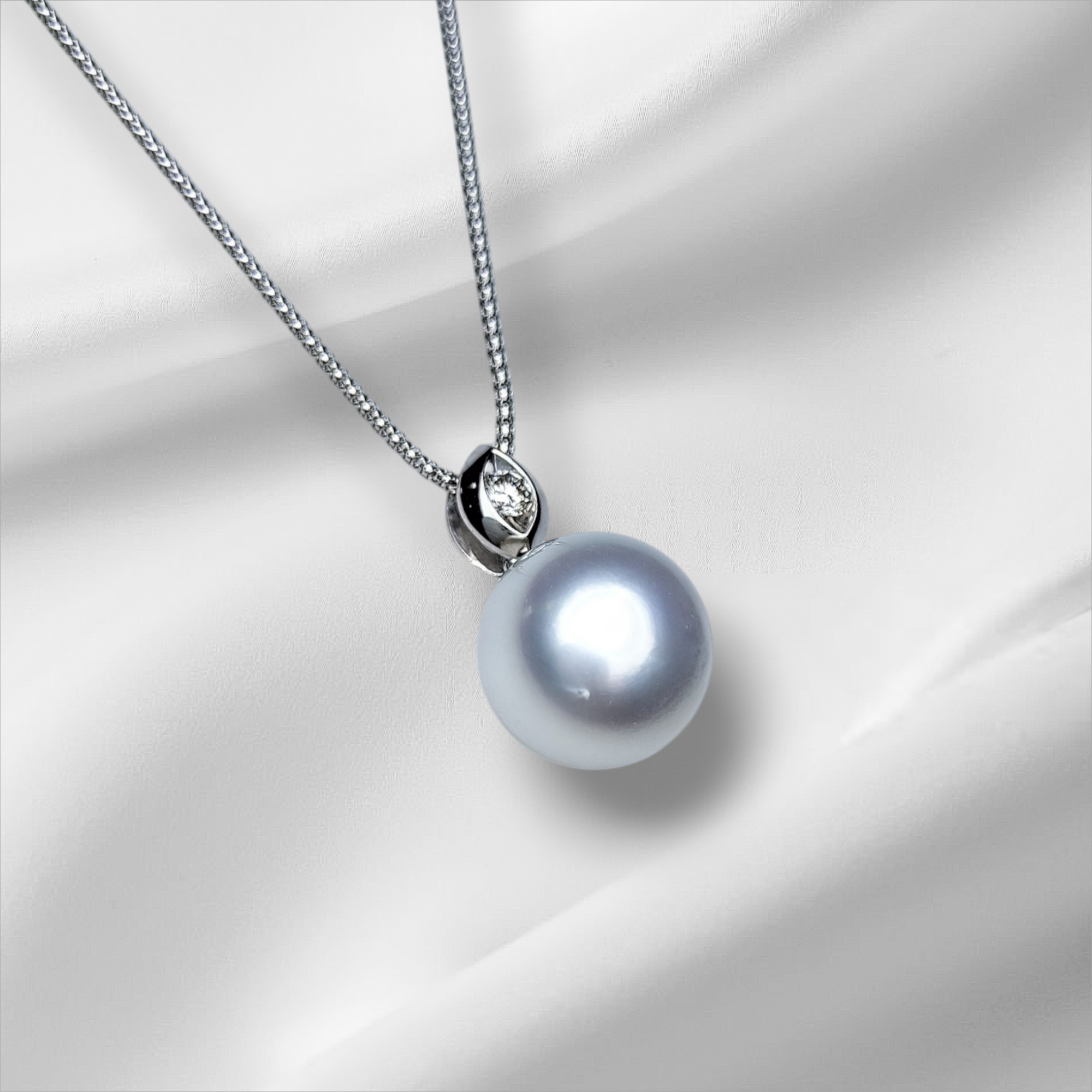 58万円⇒50%OFF☆鑑別書付(Certificate )☆K18WG South Sea Pearl (南洋真珠) 13.8mm D0.13ct☆Pendant Necklaces☆