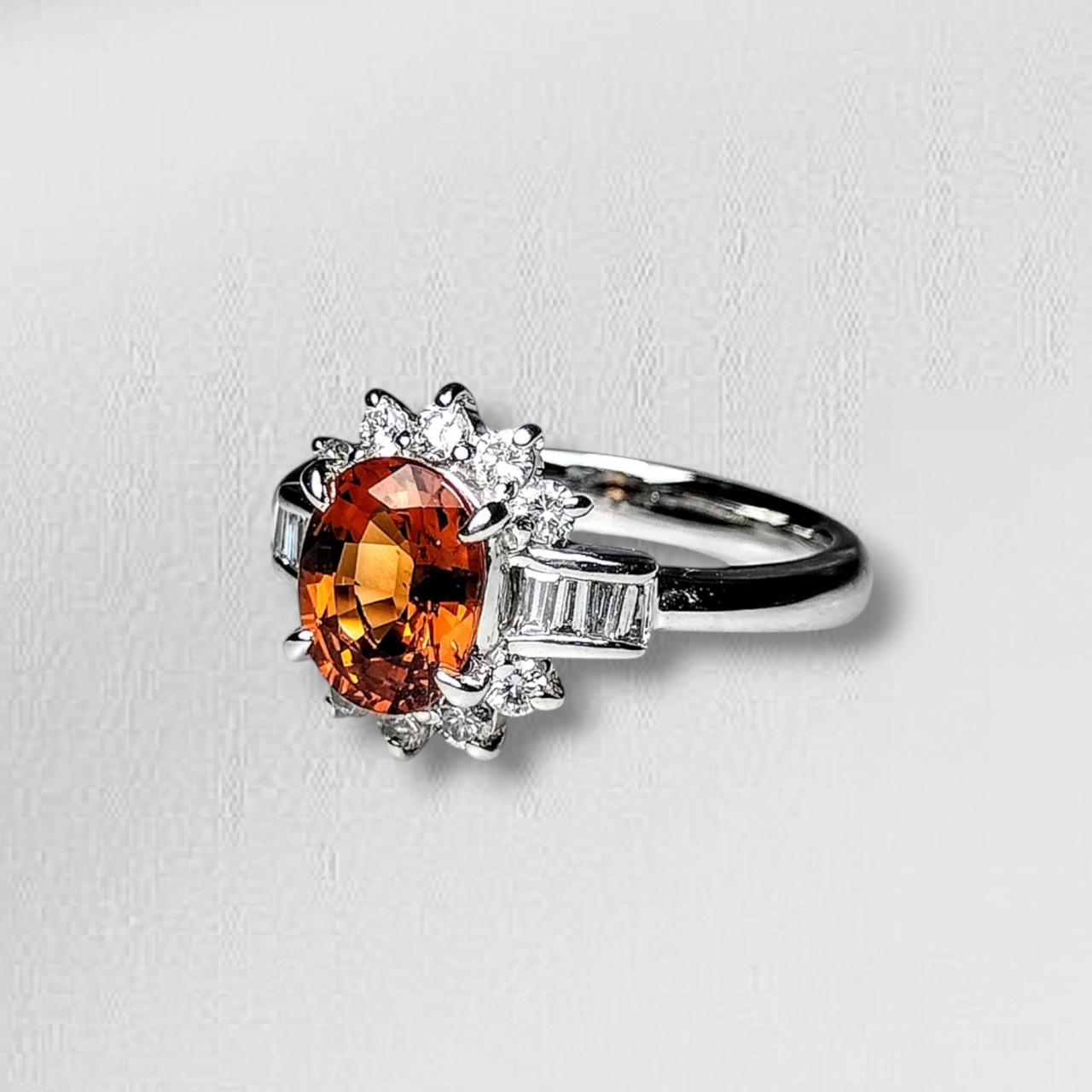 鑑別書付(Certificate )☆Pt Garnet(ガーネット)1.577ct D0.38ct☆Ring☆