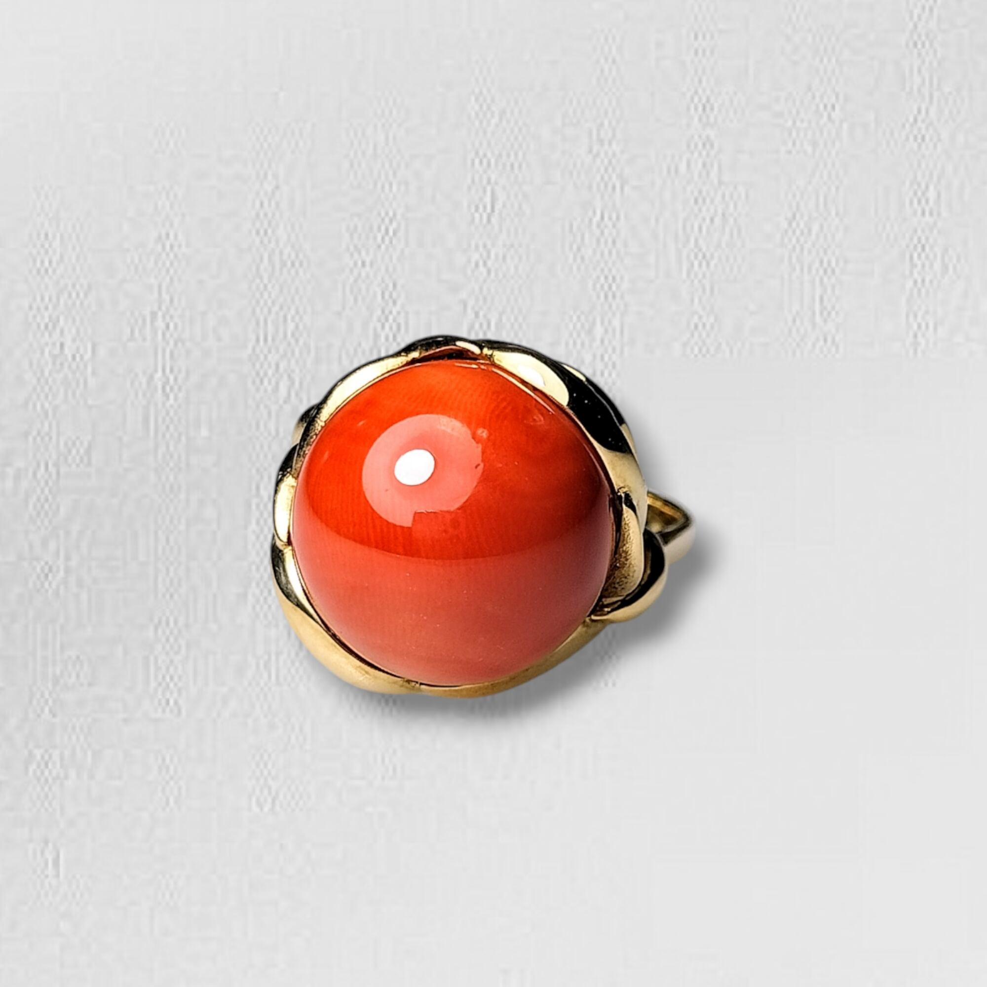 鑑別書付(Certificate )☆K18 Coral (珊瑚) 13.1mm☆Ring☆