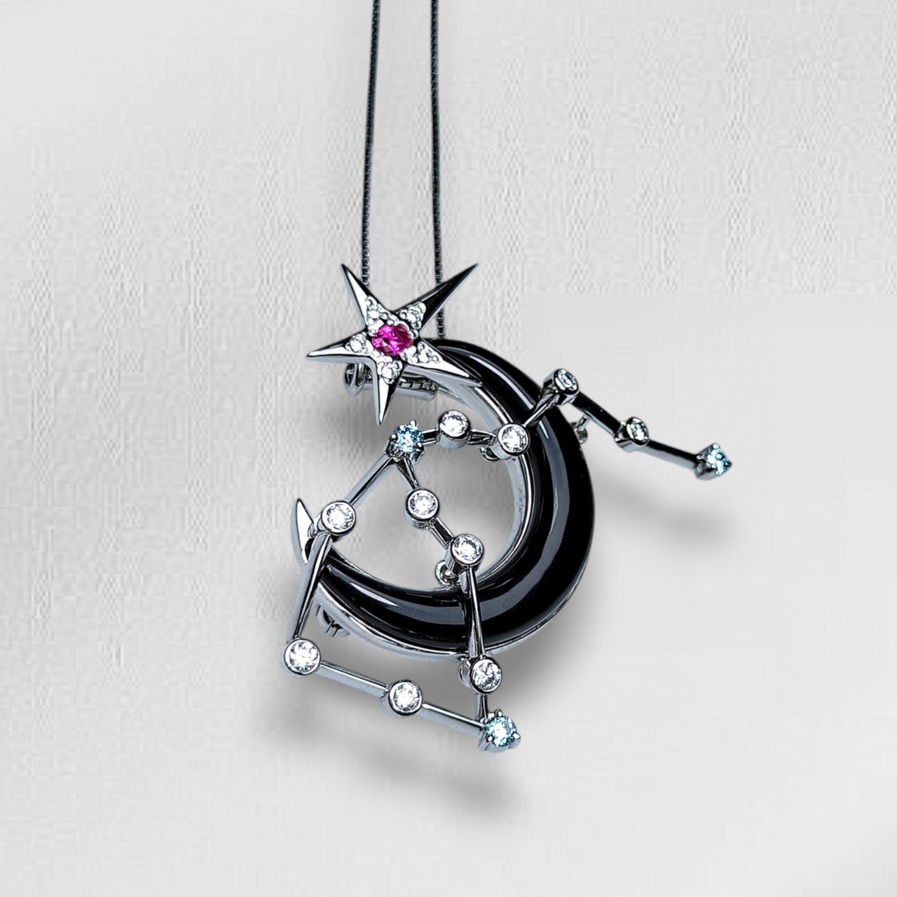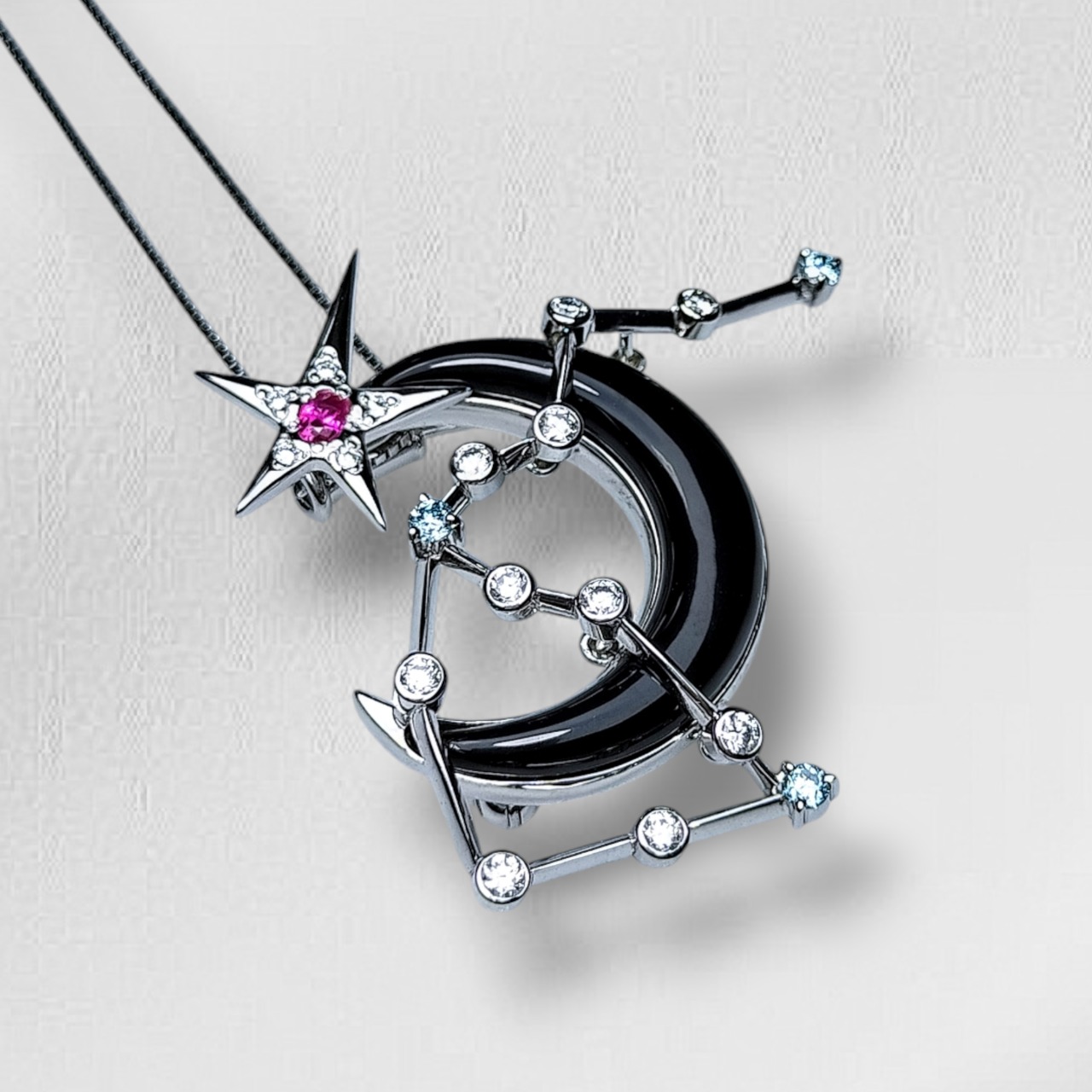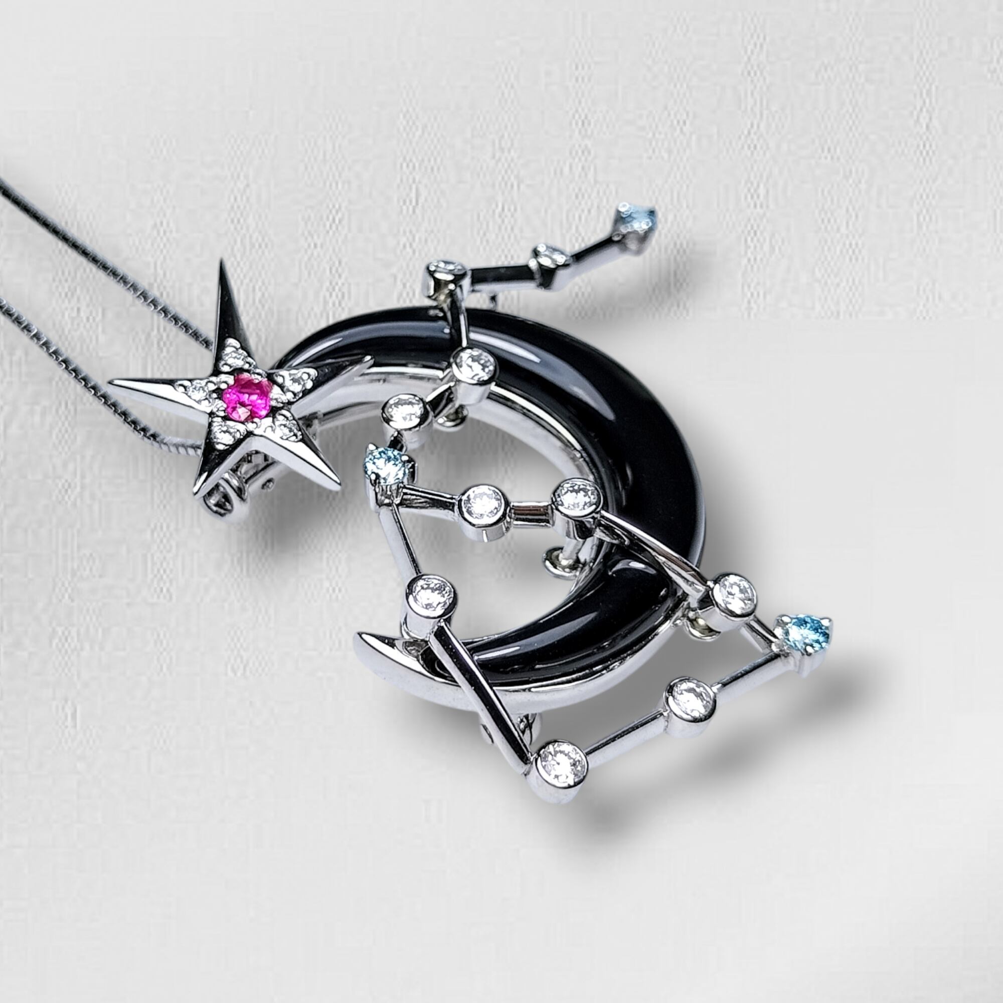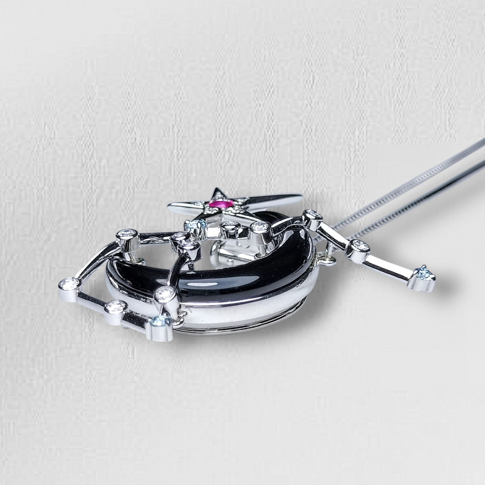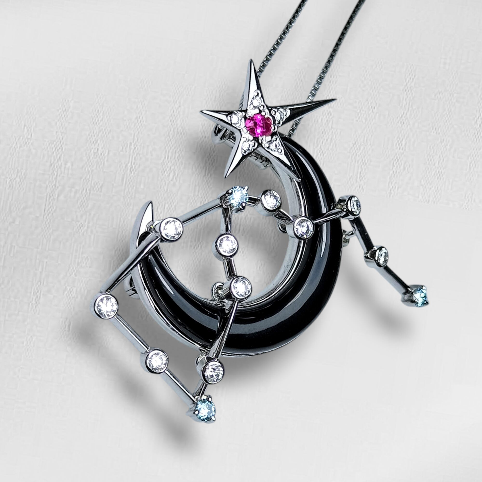 鑑別書付(Certificate )☆K18WG D0.49ct Ruby(ルビー)0.07ct Onyx(オニキス)☆Brooch✩Pendant Necklaces✩