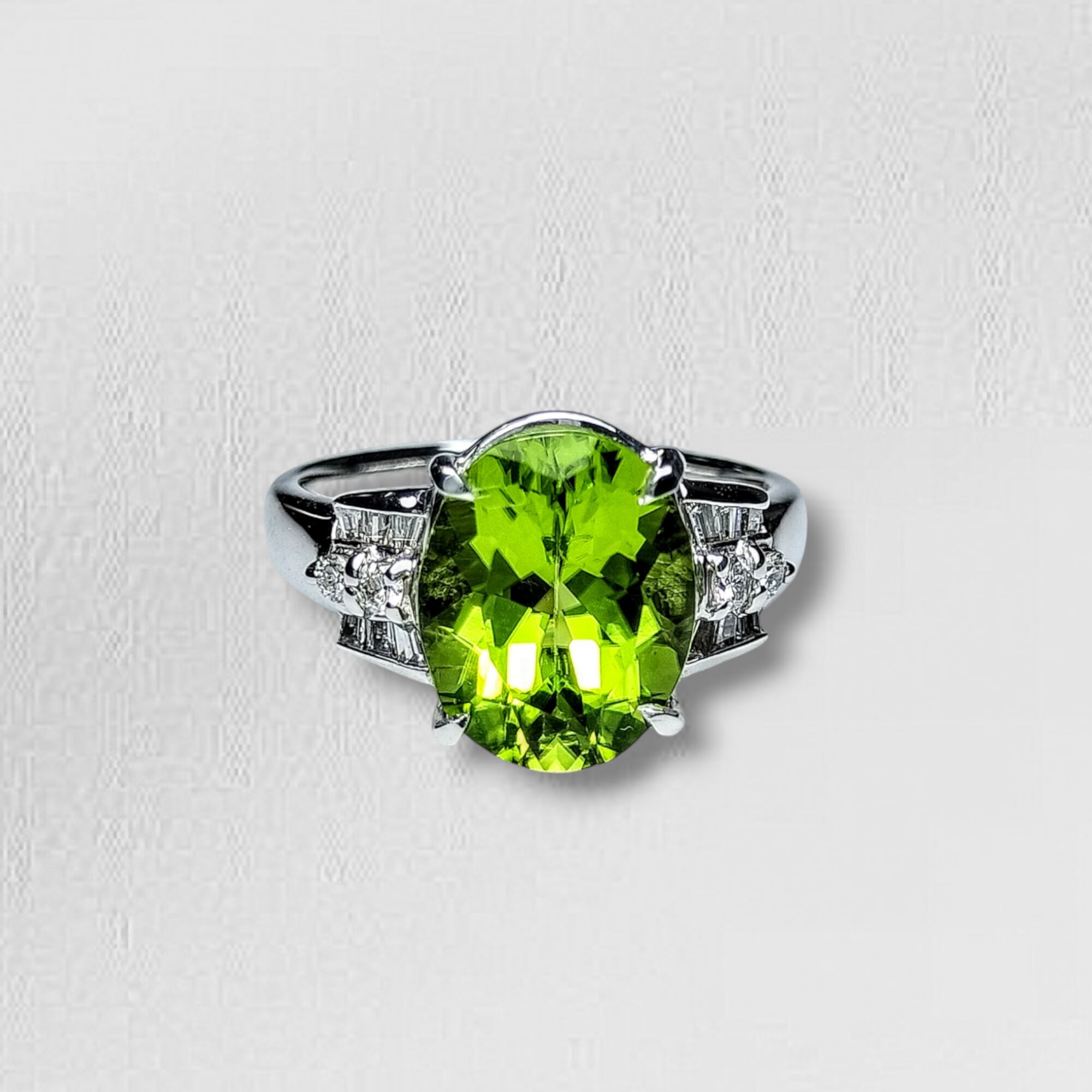鑑別書付(Certificate )☆Pt Peridot(ペリドット)3.35ct D0.23ct☆Ring☆