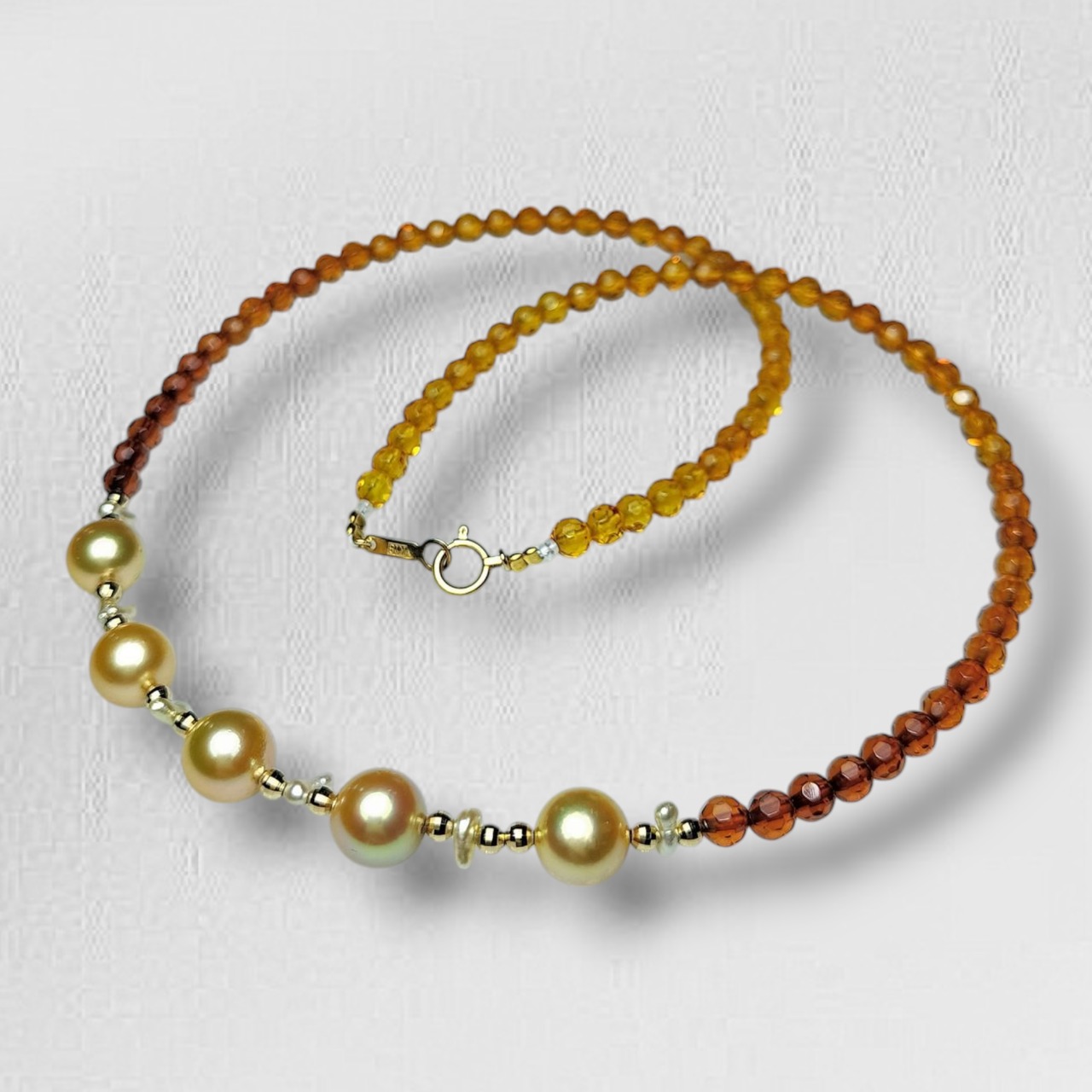 鑑別書付( Certificate )☆K18 AKOYA Sea Pearl(あこや本真珠)7.5〜8.0mm Amber(琥珀) AKOYA keshi Sea Pearl(あこや芥子真珠)☆necklace☆